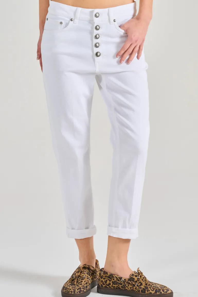 Scopri i jeans Koons Gioiello di Dondup, un modello dal design contemporaneo e versatile. Questi jeans bianchi sono perfetti per arricchire il tuo guardaroba con un tocco di eleganza e freschezza. La loro vestibilità comoda e il taglio slanciato si adattano perfettamente a diverse silhouette, rendendo ogni look impeccabile.