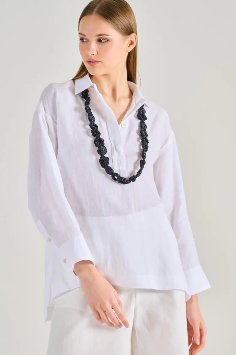 Realizzata con cura, questa camicia offre una vestibilità comoda e versatile. Può essere facilmente abbinata a jeans, pantaloni eleganti o gonne, rendendola un must-have per chi cerca uno stile classico e intramontabile.