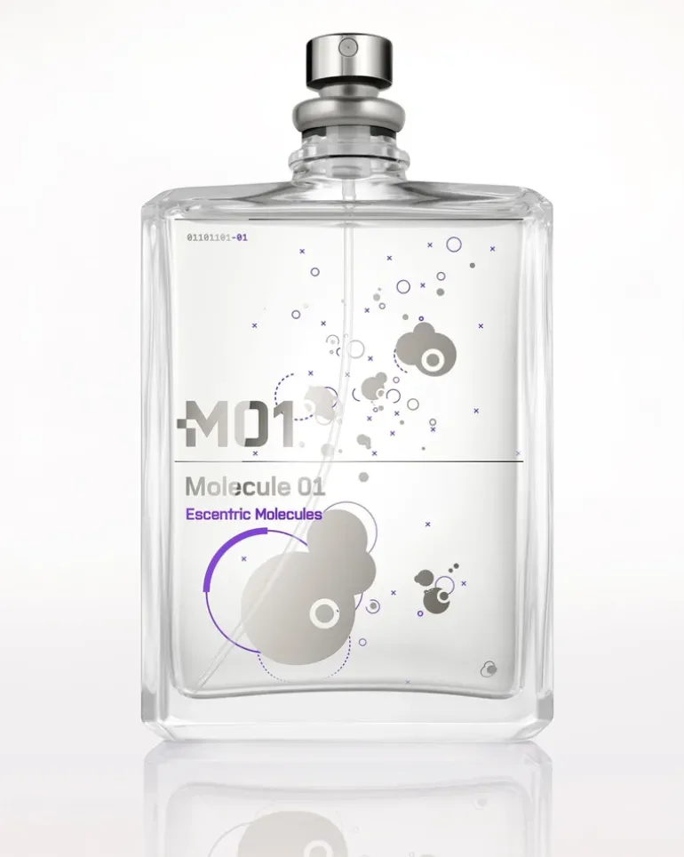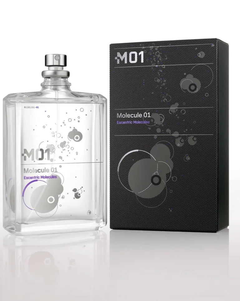Molecule 01 è un concetto rivoluzionario nel campo dei profumi in quanto è costituito da un singolo ingrediente, un unico aroma chimico ‘Iso E Super’. Più che un profumo, un vero e proprio effetto, infatti, come Escentric 01, opera a livello feromonico. L’aroma caldo e vellutato della molecola, le impercettibili note vellutate e legnose svaniscono e riaffiorano inaspettatamente nel tempo conferendo a chi lo indossa un indefinibile radiosità, un potere amalliante verso chi lo circonda.