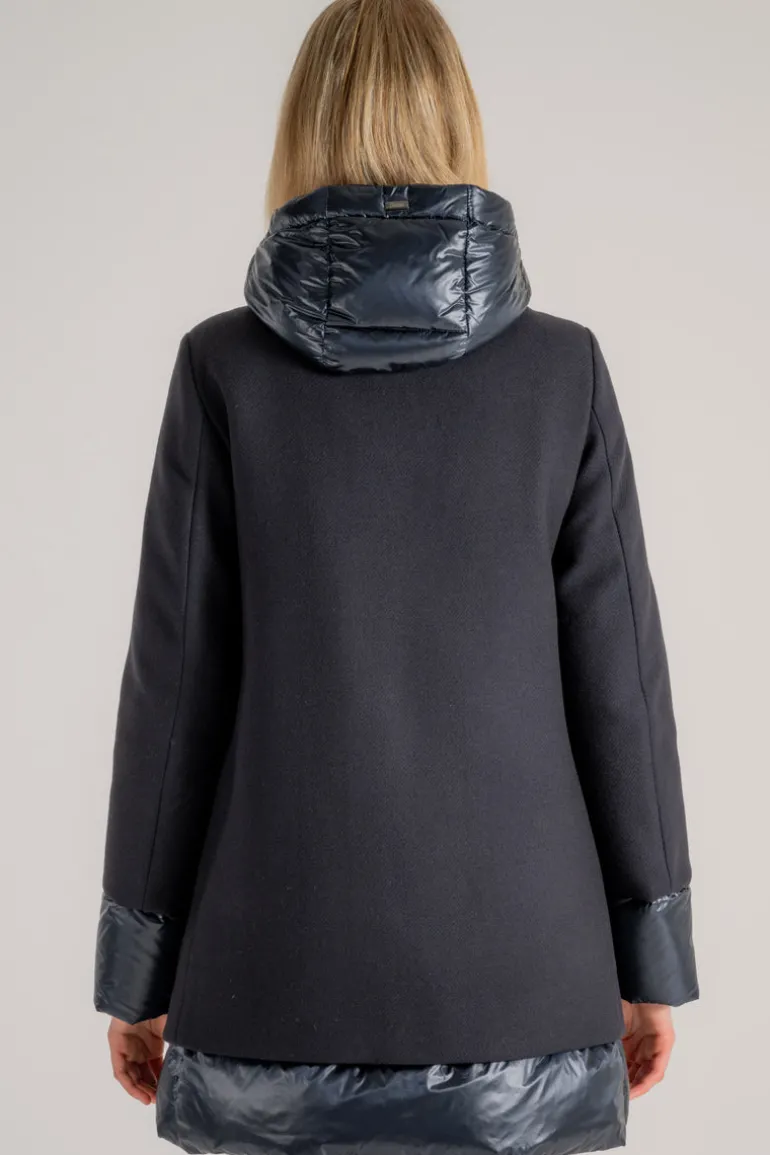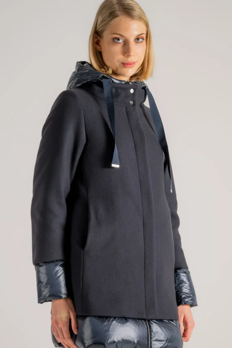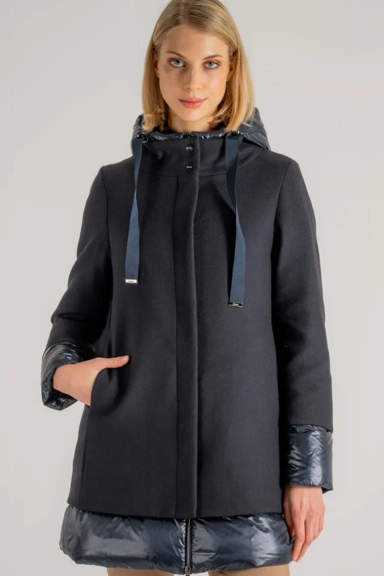 Chiusura coperta con zip a doppio cursore e con bottoni automatici