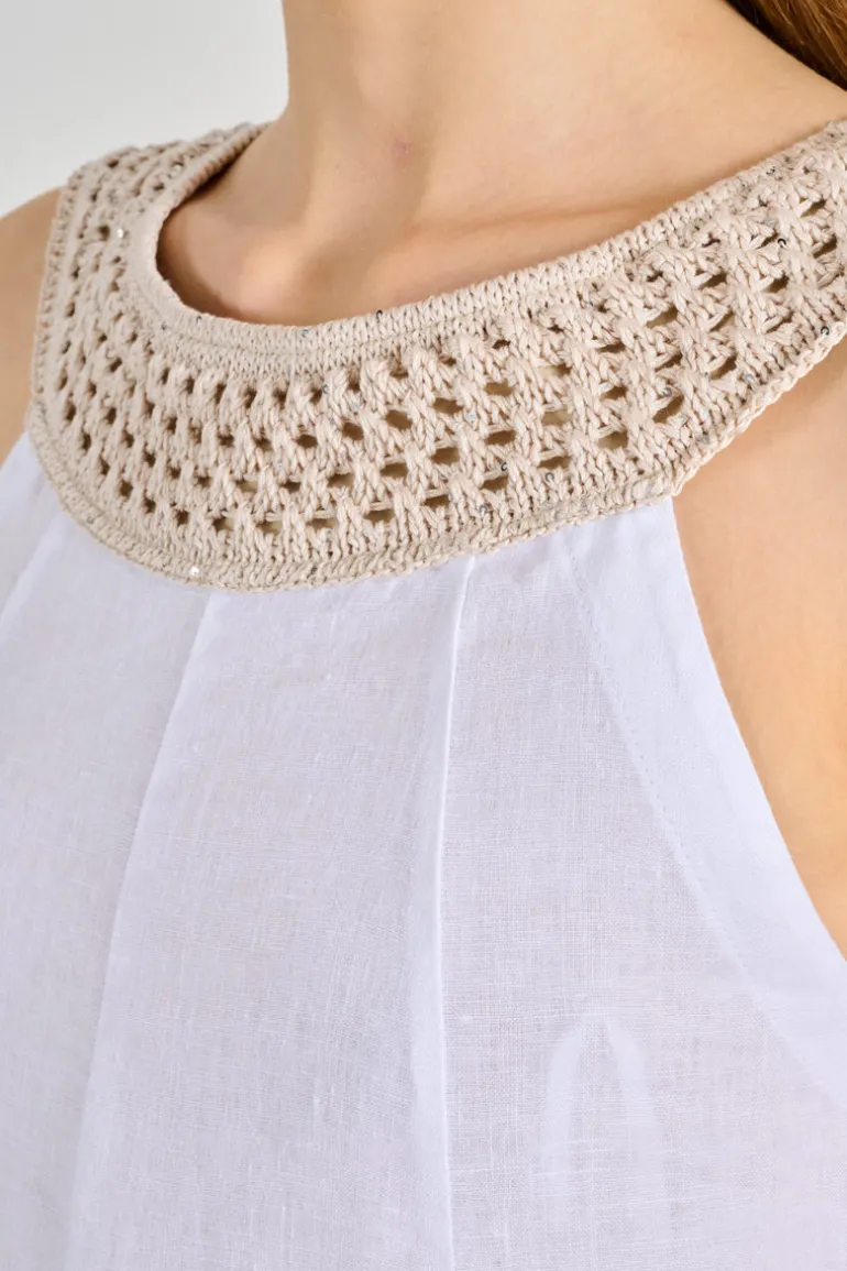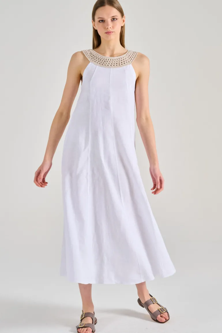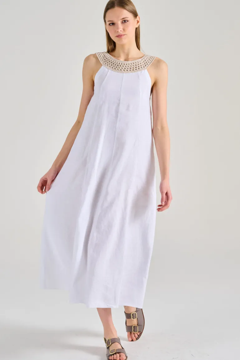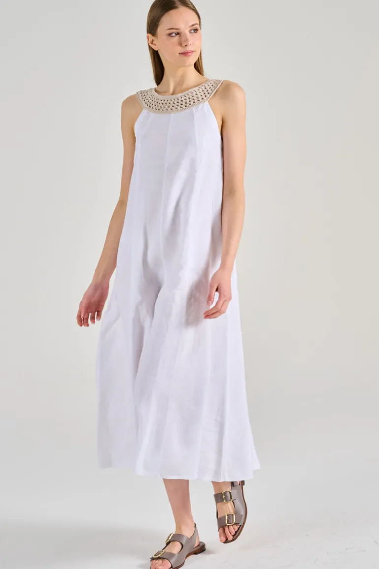 Con il suo taglio versatile, questo abito si adatta perfettamente a diverse situazioni, dall’ufficio a eventi speciali. La tonalità bianca, sempre chic, facilita abbinamenti con accessori colorati e scarpe di ogni genere. Semplice ma unico, è l’ideale per ogni donna che desidera esprimere la propria personalità attraverso il proprio abbigliamento.