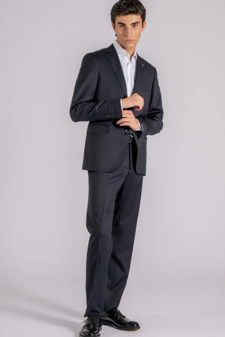 - Caratteristiche: Monopetto, allacciatura a 2 bottoni, tasche con patta, pantalone ventre piatto
