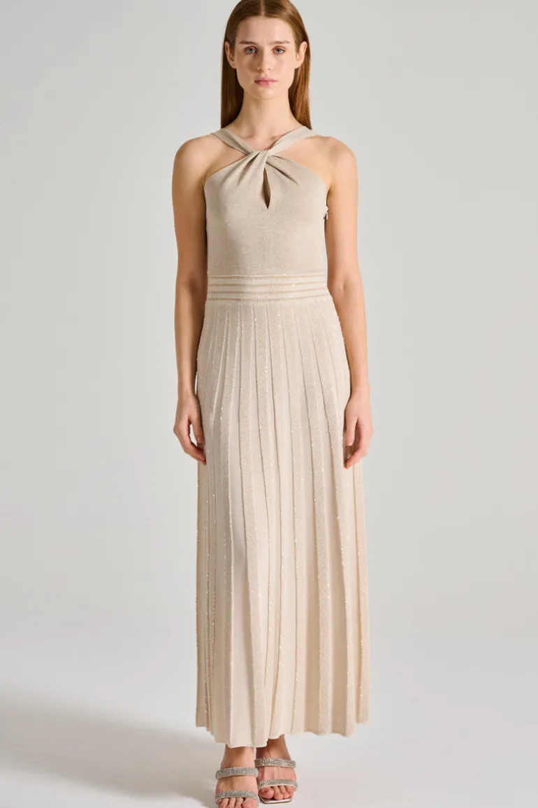 Scopri l’eleganza senza tempo dell’abito 100488 di d.exterior, un capo che combina stile e raffinatezza. Realizzato in un delicato colore marmo, questo abito è perfetto per ogni occasione, sia formale che informale.