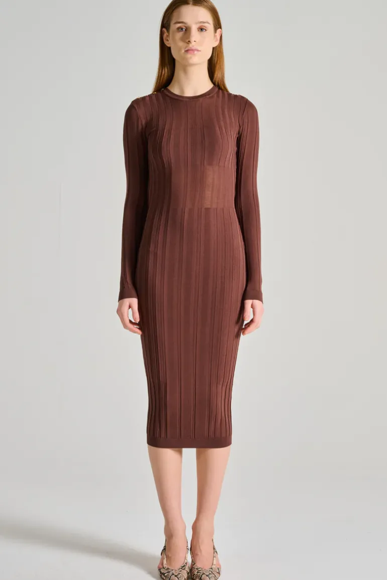 Grazie alla sua versatilità, questo abito può essere facilmente abbinato a tacchi alti o stivaletti per creare look diversi. La sua costruzione in maglia offre una vestibilità perfetta, evidenziando la silhouette femminile. Ideale per chi cerca un capo chic e intuitivo per il proprio guardaroba.