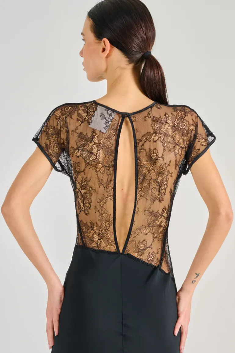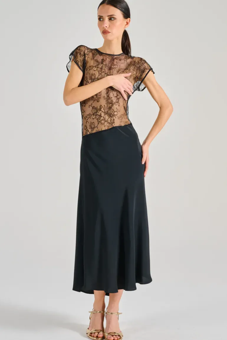 Scopri l’eleganza senza tempo dell’abito Lucita realizzato da Semi-Couture. Questo abito, nella raffinata tonalità nero, è perfetto per ogni occasione, dall’evento formale a una cena con amici.