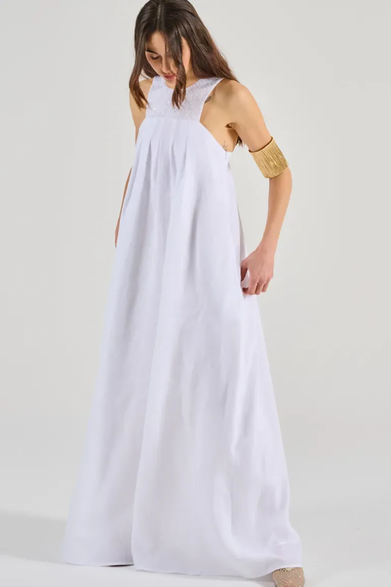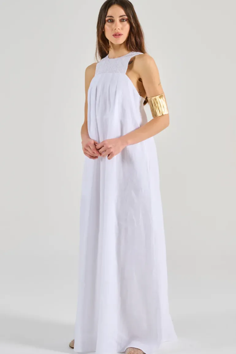 Perfetto per le giornate estive o per occasioni speciali, l’abito si presta a numerosi abbinamenti e può essere facilmente accessorato per adattarsi a diversi stili. La sua versatilità lo rende un must-have nel guardaroba di ogni donna.