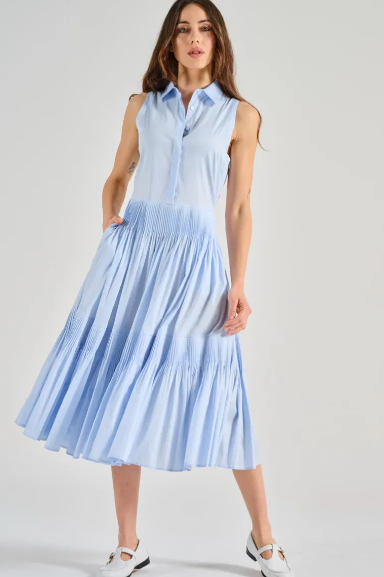 La scelta ideale per donne che desiderano un look raffinato e versatile. Grazie alla sua linea semplice e alla tonalità fresca, questo abito può essere facilmente abbinato a diverse scarpe e accessori, rendendolo un must-have nel tuo guardaroba.