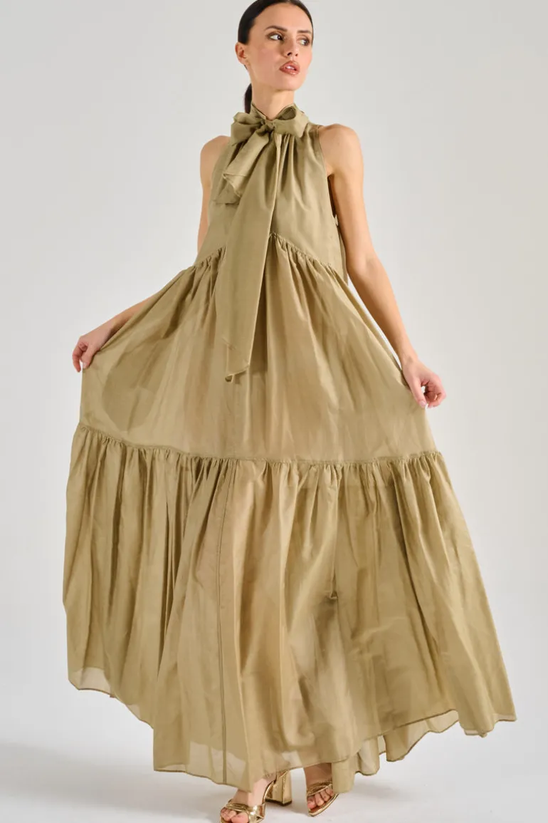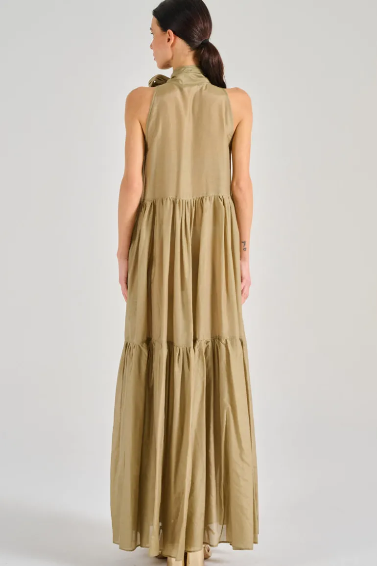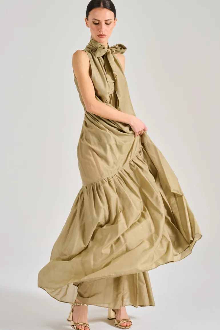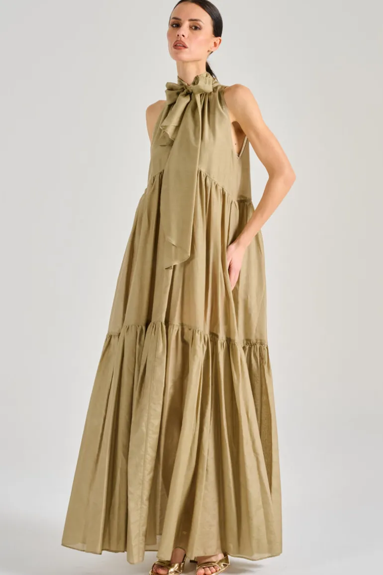 Scopri l’eleganza del vestito Tonia di Semi-Couture, un abito che si distingue per il suo raffinato design. Questo modello, realizzato in un delicato tono di verde, è perfetto per diverse occasioni, dalla più formale alla più casual.