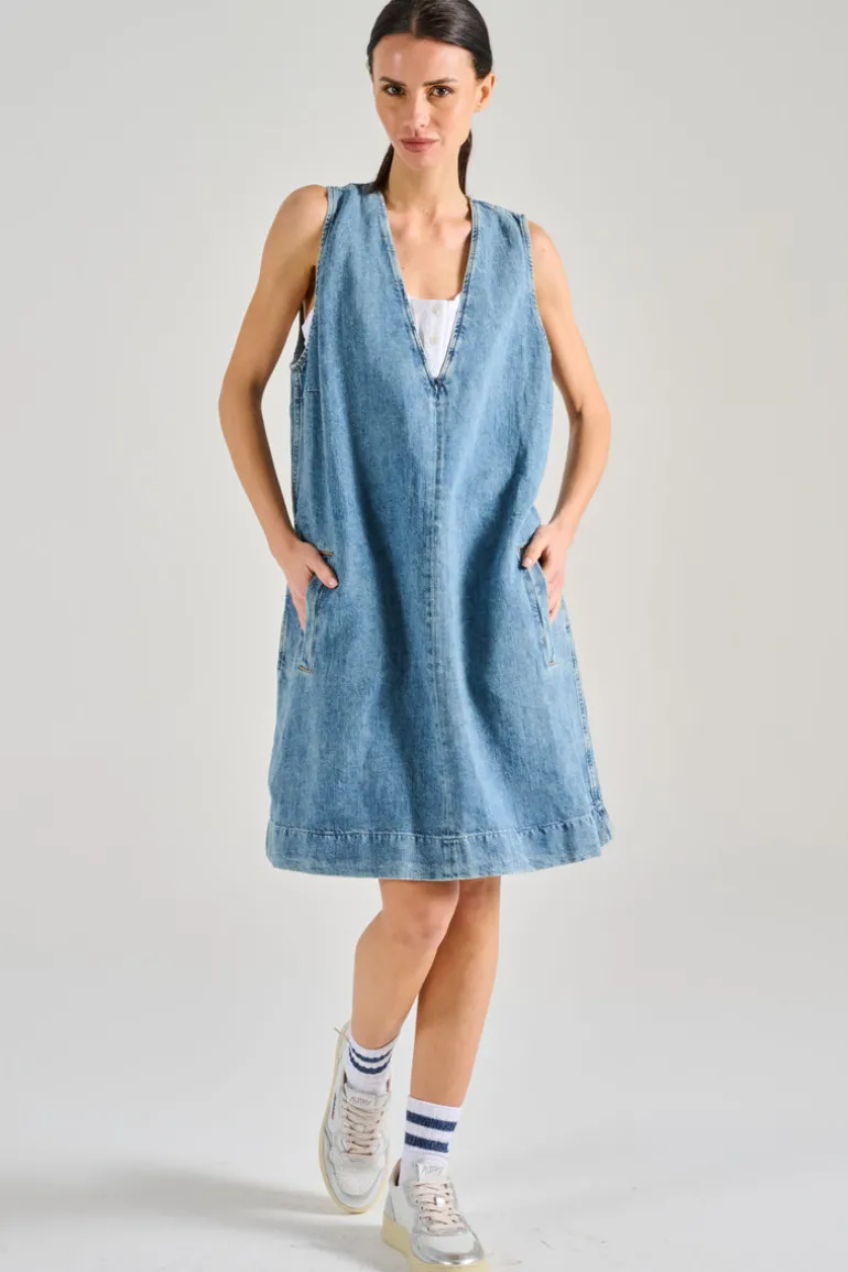 Scopri l’eleganza senza tempo del V-Neck Dress Arizona di 7 For All Mankind. Questo abito, caratterizzato da un design sofisticato, è perfetto per le occasioni formali e per le serate estive. La sua tonalità di blu si adatta facilmente a vari stili e combinazioni di accessori.