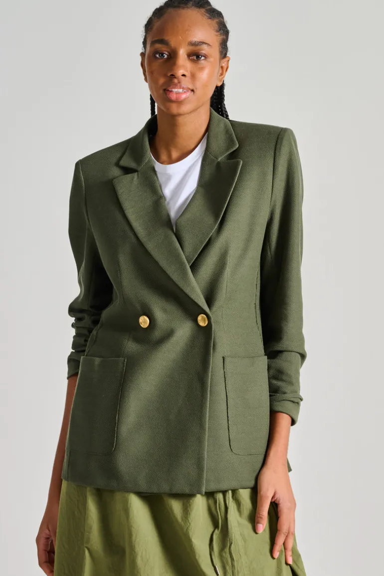Caratterizzato da una vestibilità moderna, il blazer offre una silhouette slanciata e sofisticata. La tonalità verde è ideale per abbinamenti versatile, sia con outfit formali che casual. Indossalo con una camicia bianca per un look professionale oppure con una t-shirt per un’uscita informale.