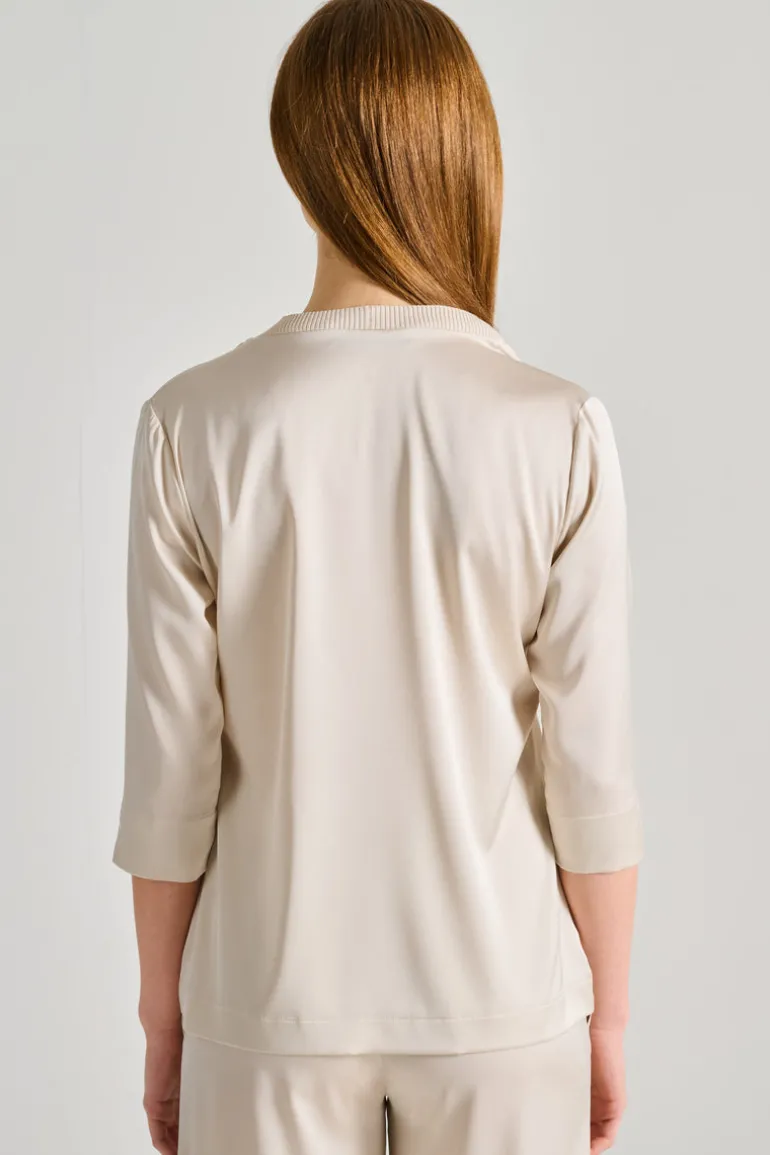 La blusa presenta un’ottima vestibilità grazie alla sua struttura fluida, che valorizza la silhouette. Ideale da indossare sia da sola che insieme a un blazer o una giacca, è un must-have per chi cerca stile e comfort senza compromessi.