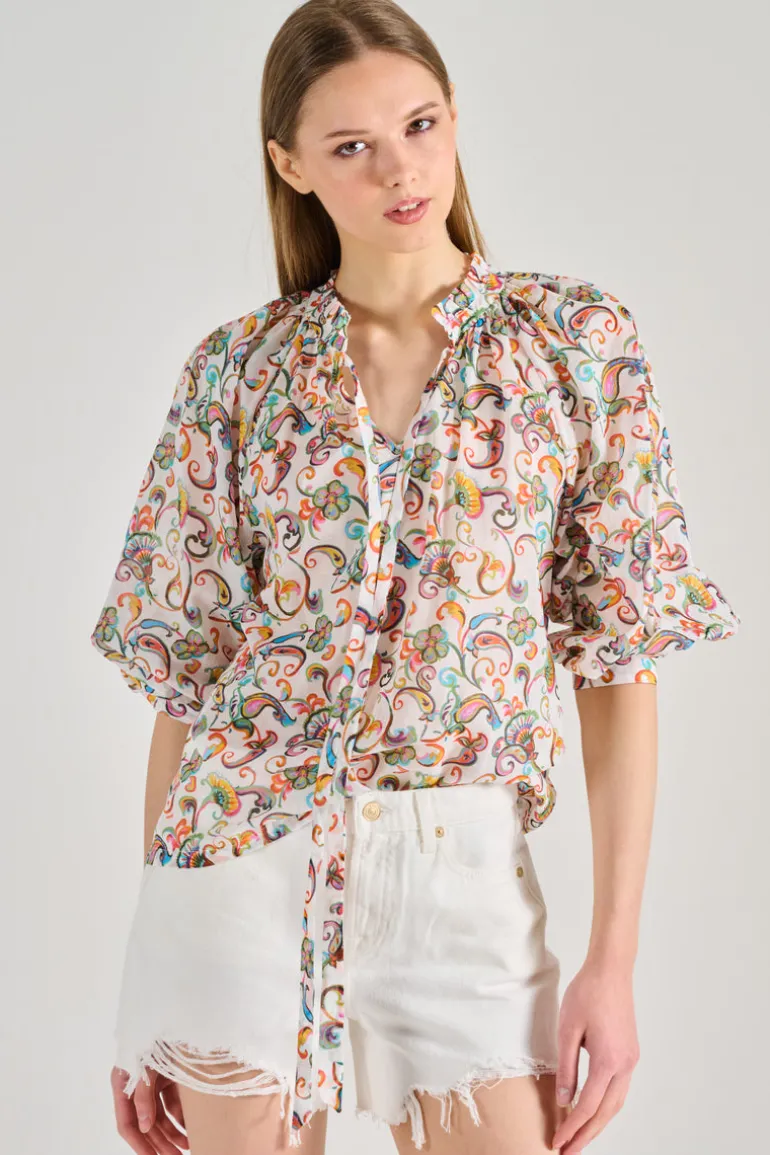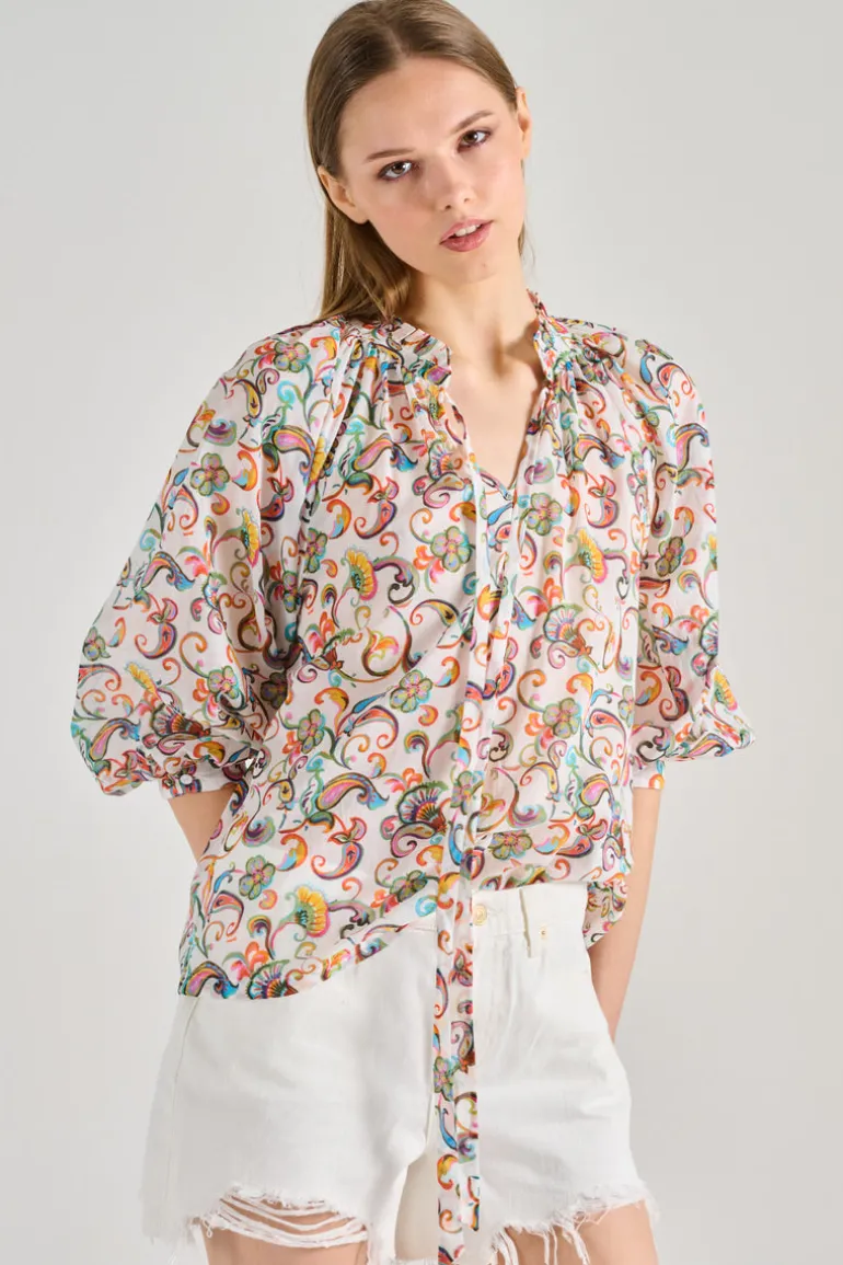La blusa è progettata per offrire comfort e stile, adattandosi facilmente a diversi look. Abbinala a un paio di jeans per un outfit casual o a una gonna per un look più formale. Un elemento essenziale per ogni donna che desidera unire eleganza e praticità nel proprio abbigliamento quotidiano.