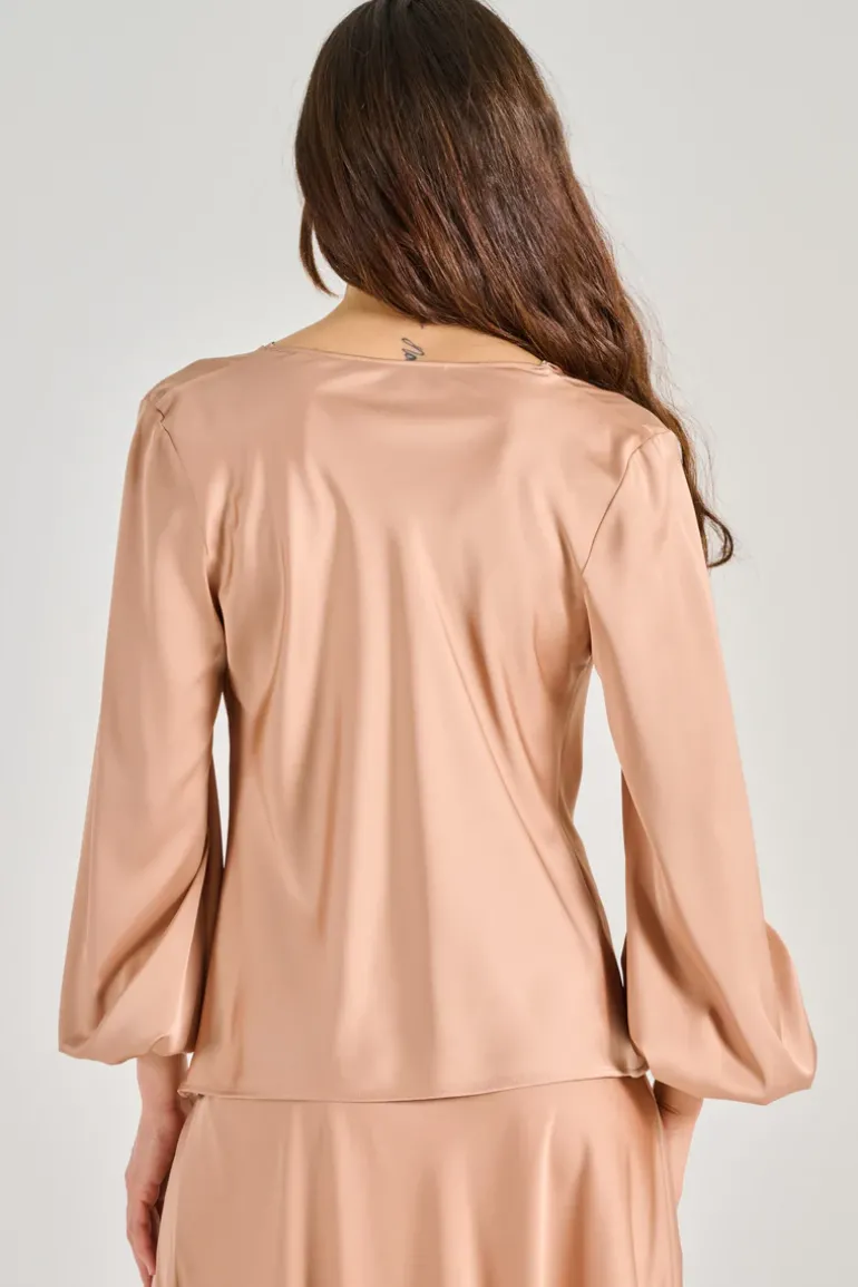 Scopri la blusa d.exterior, un capo elegante e raffinato, perfetto per ogni occasione. Realizzata in un delicato raso fluido, questa tunica si distingue per il suo colore principale rosa, ideale per un look fresco e alla moda.