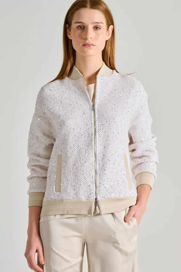 Scopri il nuovo giubbotto d.exterior, un capo d’abbigliamento versatile e alla moda, perfetto per ogni occasione. Questo bomber è caratterizzato da un design elegante e dettagli raffinati, grazie ai trame in cristalli che donano un tocco di luminosità al tuo look. La sua colorazione beige lo rende facile da abbinare con diversi outfit, sia casual che più eleganti.