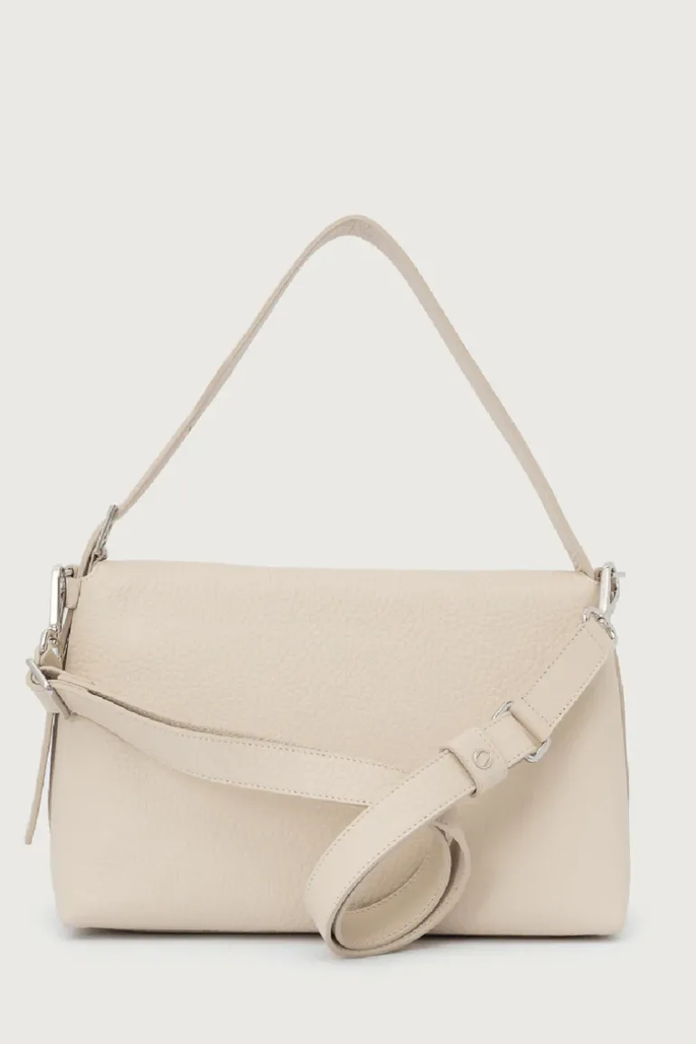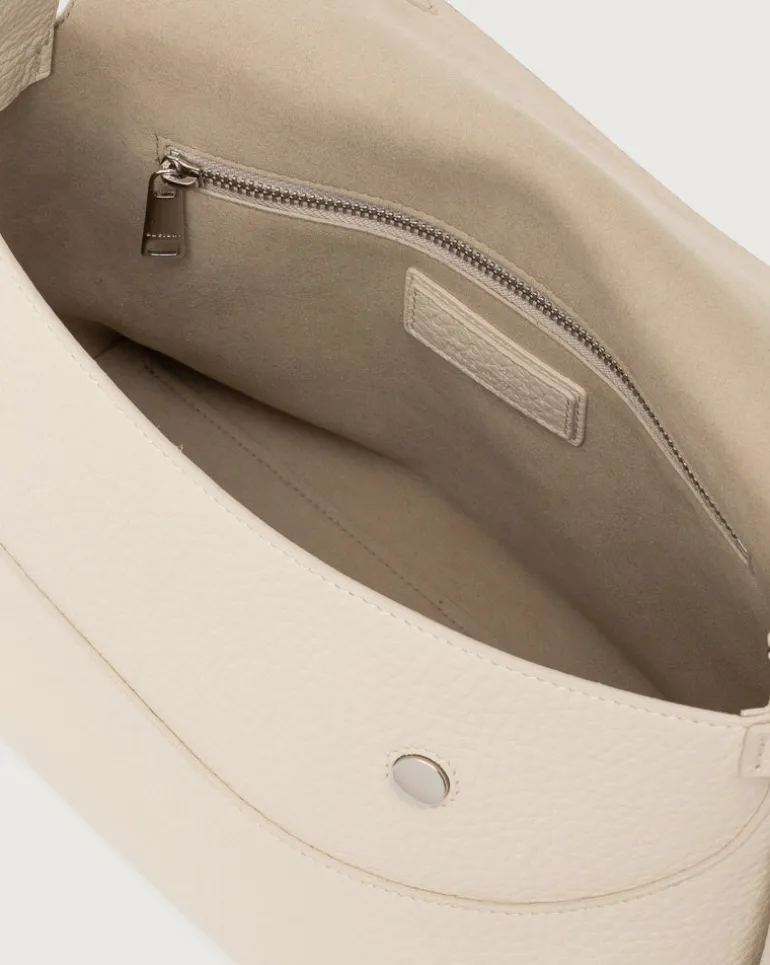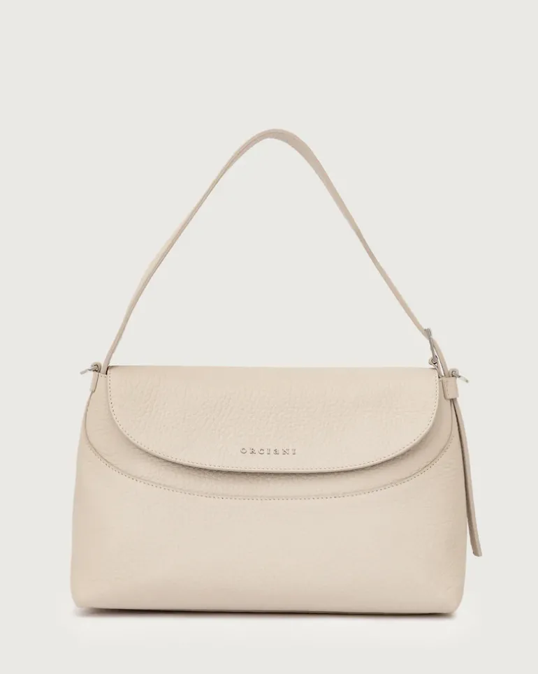 La borsa Nana Soft di Orciani è l’accessorio perfetto per chi cerca un connubio di eleganza e praticità. Realizzata in pelle martellata, questa borsa si distingue per la sua texture morbida e raffinata, mentre il suo colore beige si adatta facilmente a ogni outfit.