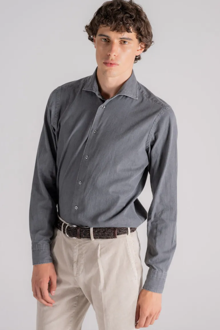 Combinata con un paio di pantaloni classici o jeans, questa camicia grigia promette di infondere il tuo look di una sofisticata semplicità. Per un look serale, abbinala con un blazer scuro e una cravatta sottile.