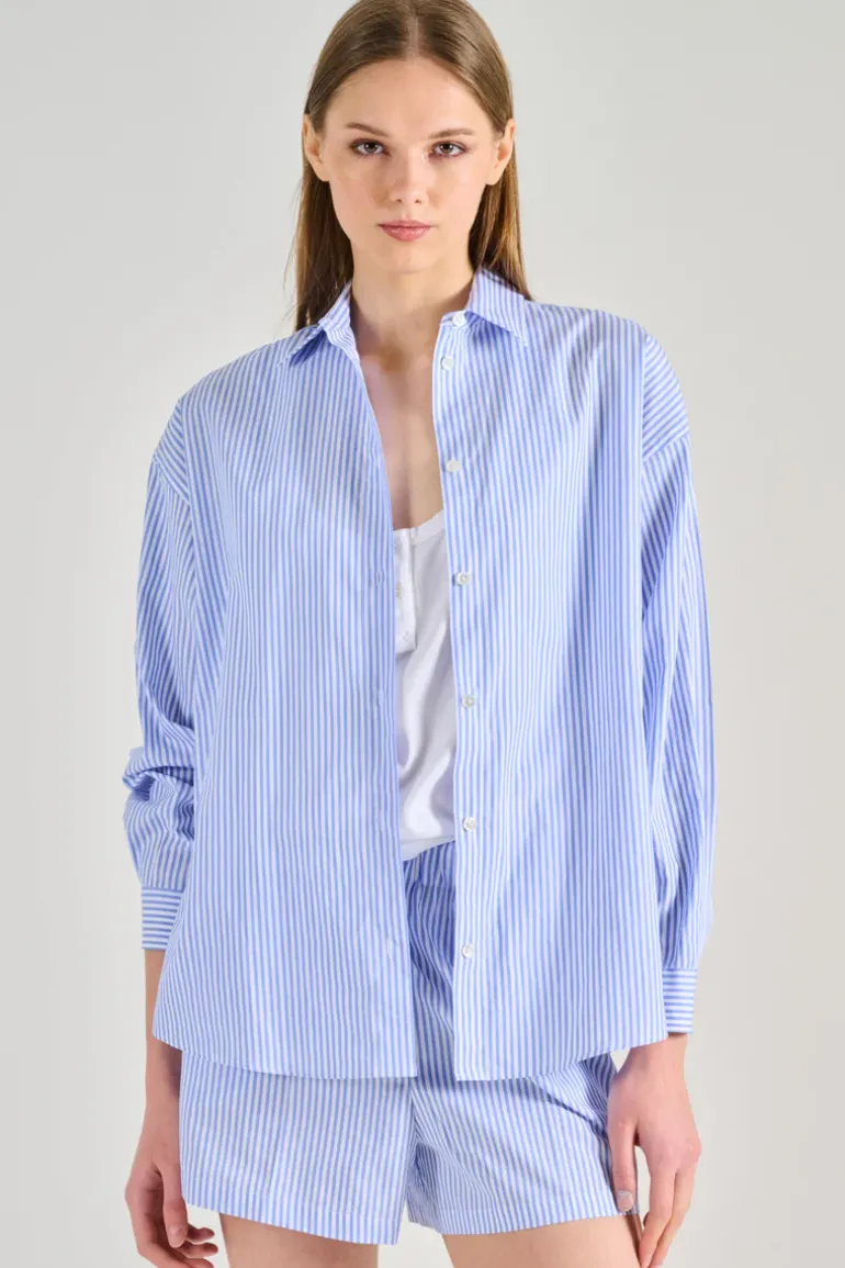 Realizzata con attenzione ai dettagli, questa camicia presenta un design che valorizza la figura, rendendola una scelta perfetta sia per un look casual che per uno più formale. Le sue linee pulite e il suo colore delicato la rendono un must-have nel tuo armadio.