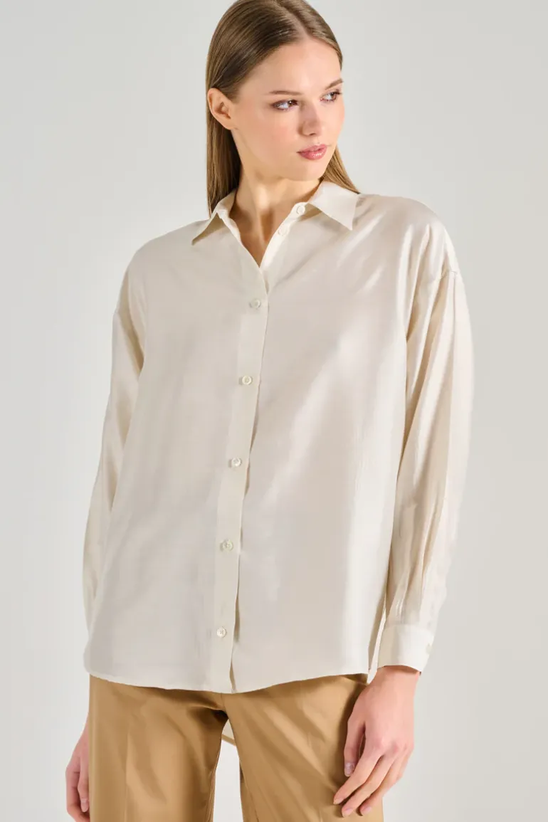 La camicia presenta una silhouette classica, ideale per essere abbinata a jeans, gonne o pantaloni eleganti. Grazie al suo design raffinato, si presta a look sia formali che casual. Aggiungi questo must-have al tuo outfit e non passare inosservata.