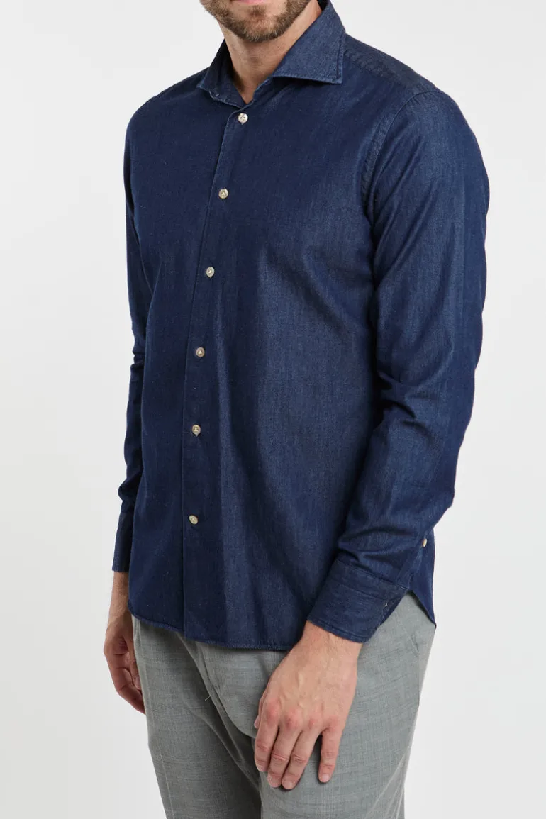 Camica in denim ultra light, interno collo idrosolubile.