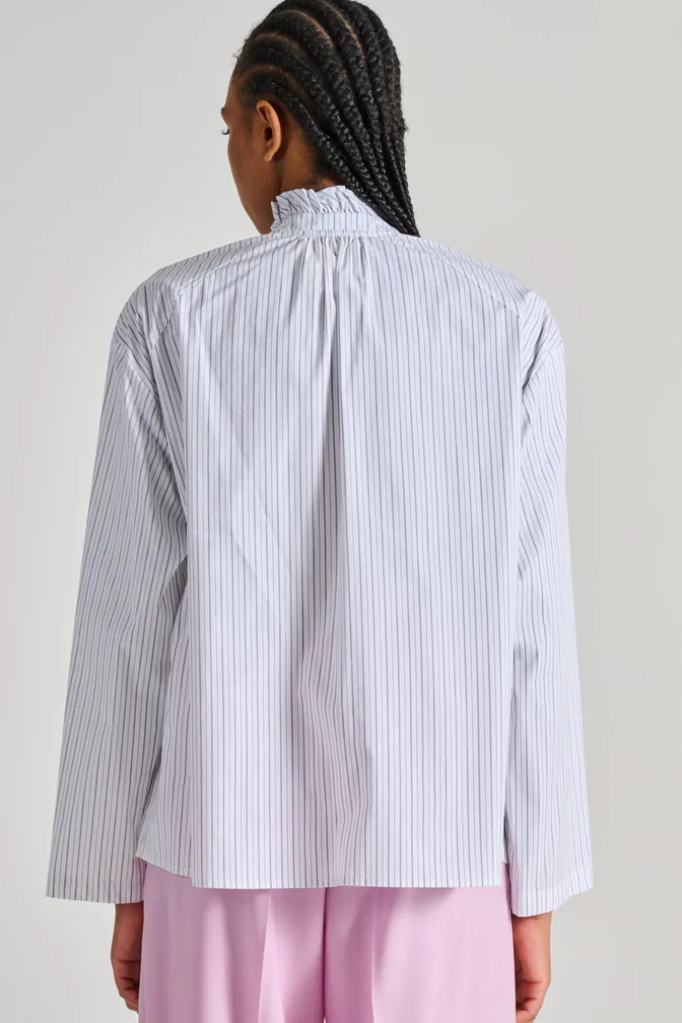 La camicia presenta un design classico che si adatta facilmente a diverse combinazioni. La sua semplicità è accentuata da linee pulite e una silhouette raffinata, rendendola un must-have nel guardaroba femminile. La camicia è facilmente abbinabile a pantaloni eleganti o a un jeans casual, permettendo di creare outfit sofisticati per il lavoro o per il tempo libero.