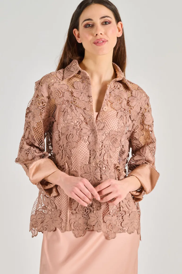Realizzata con attenzione ai dettagli, questa camicia offre un tocco di classe e femminilità. Il pizzo macramè conferisce un fascino unico e ricercato, rendendola un’aggiunta versatile al tuo guardaroba. Perfetta da indossare sia in occasioni formali che per un look più casual, questa camicia sarà sicuramente una scelta di stile.
