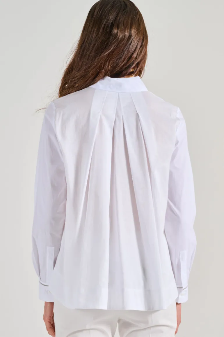 La camicia è realizzata in popeline, un tessuto leggero e traspirante, perfetto per la stagione primaverile ed estiva. Il suo stile classico la rende facile da abbinare con pantaloni eleganti o jeans casual, garantendo sempre un look curato e sofisticato. Dotata di colletto e bottoni, questa camicia è un must-have nel guardaroba di ogni donna.