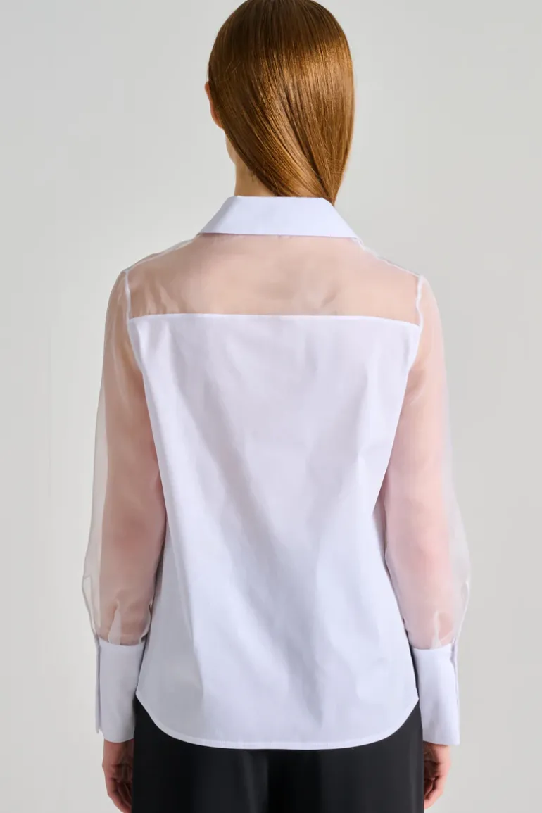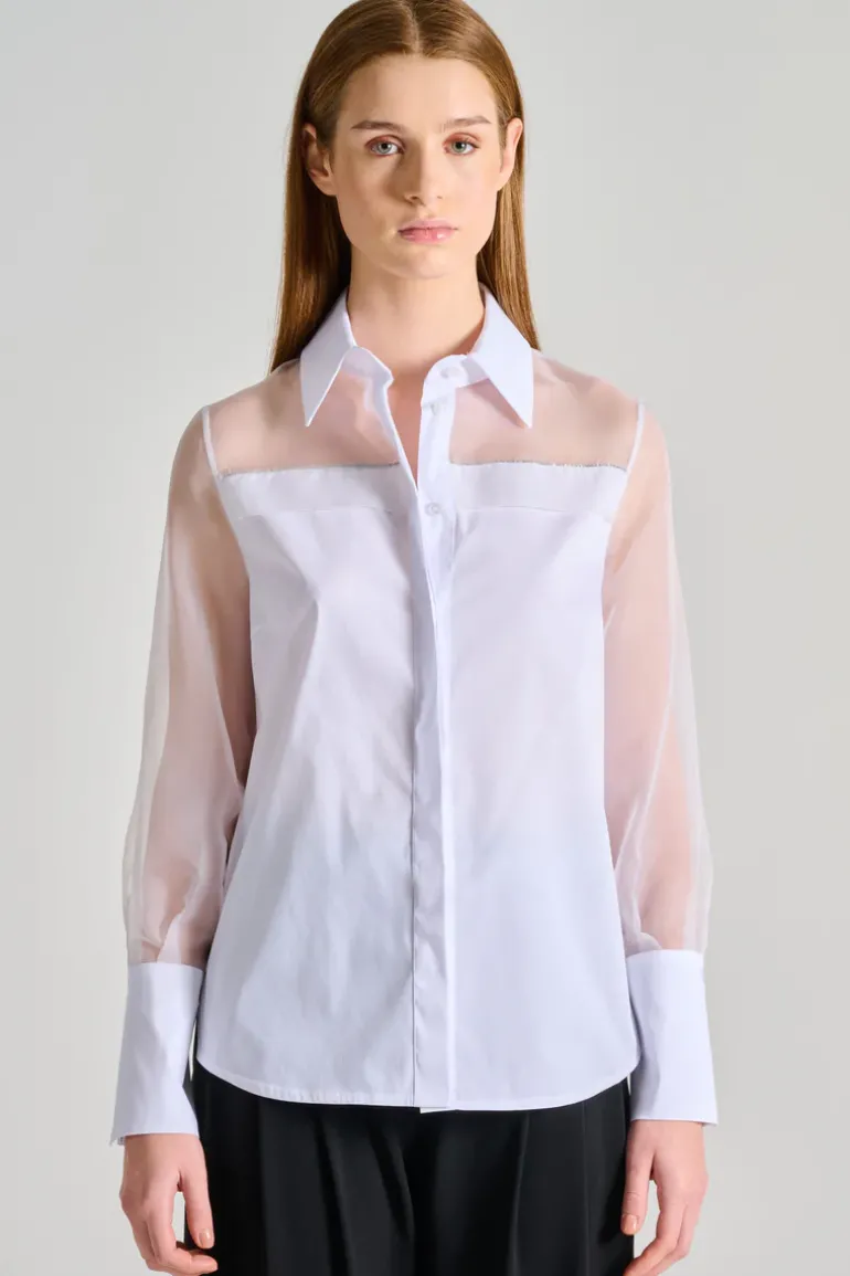 Scopri la camicia in popeline e organza della linea d.exterior, un capo d’abbigliamento versatile e raffinato. Questa camicia è pensata per chi cerca uno stile elegante e contemporaneo, perfetta per le occasioni formali o per un look chic quotidiano.