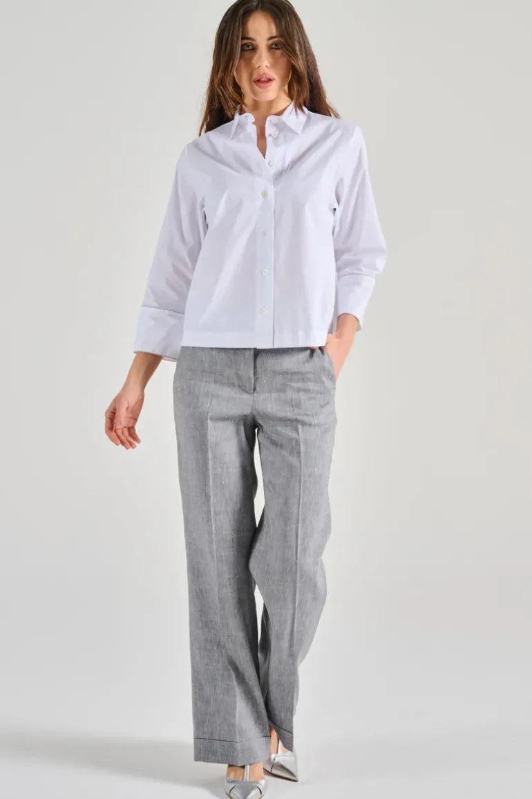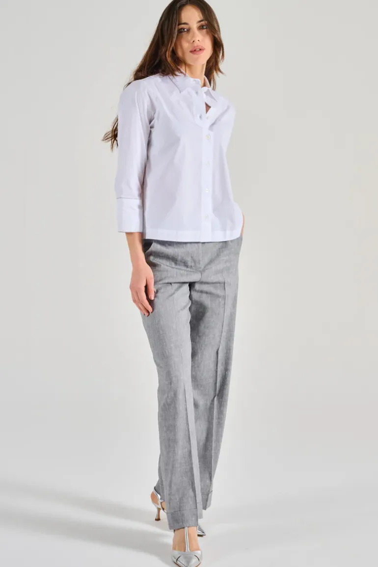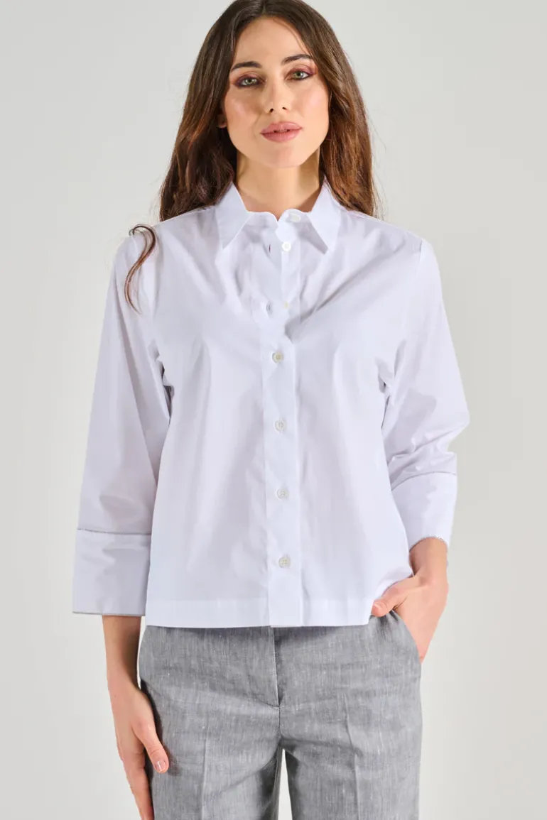 Scopri la camicia in popeline stretch bianco di Peserico, un capo essenziale per il tuo guardaroba. Questa camicia combina eleganza e comfort, perfetta per molteplici occasioni. Il design versatile ti consente di abbinarla con pantaloni formali o jeans per un look casual-chic.