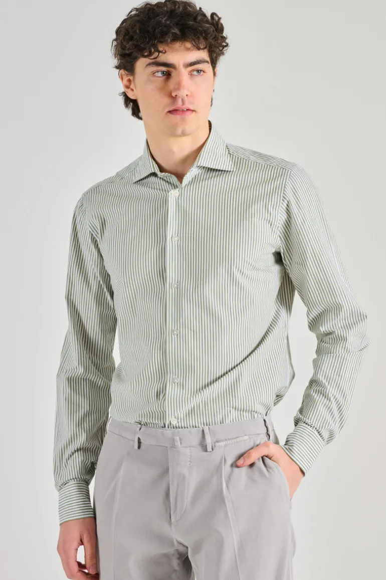 Realizzata con attenzione ai dettagli, la camicia si adatta perfettamente a qualsiasi silhouette, garantendo comfort e stile. Aggiungi un tocco di freschezza al tuo outfit con questo modello intramontabile, perfetto sia per abbinamenti casual che più formali.