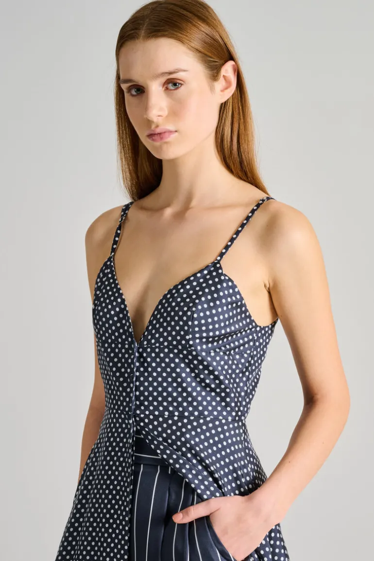Scopri l’eleganza senza tempo dell’abito mini pois da donna firmato co.go.. Questo abito è perfetto per ogni occasione, grazie al suo design versatile e raffinato. La stampa a pois aggiunge un tocco di originalità, mentre il colore nero lo rende facilmente abbinabile con accessori di ogni tipo.