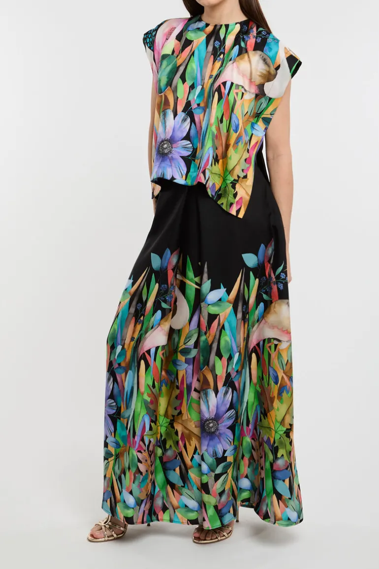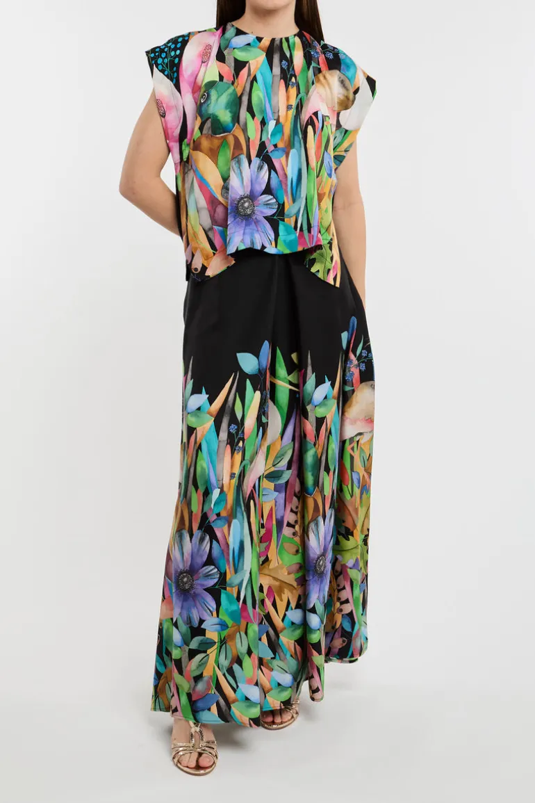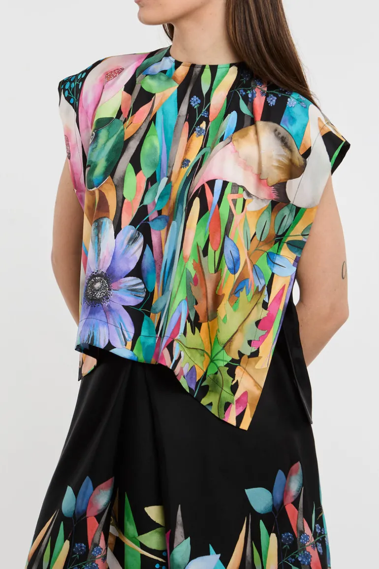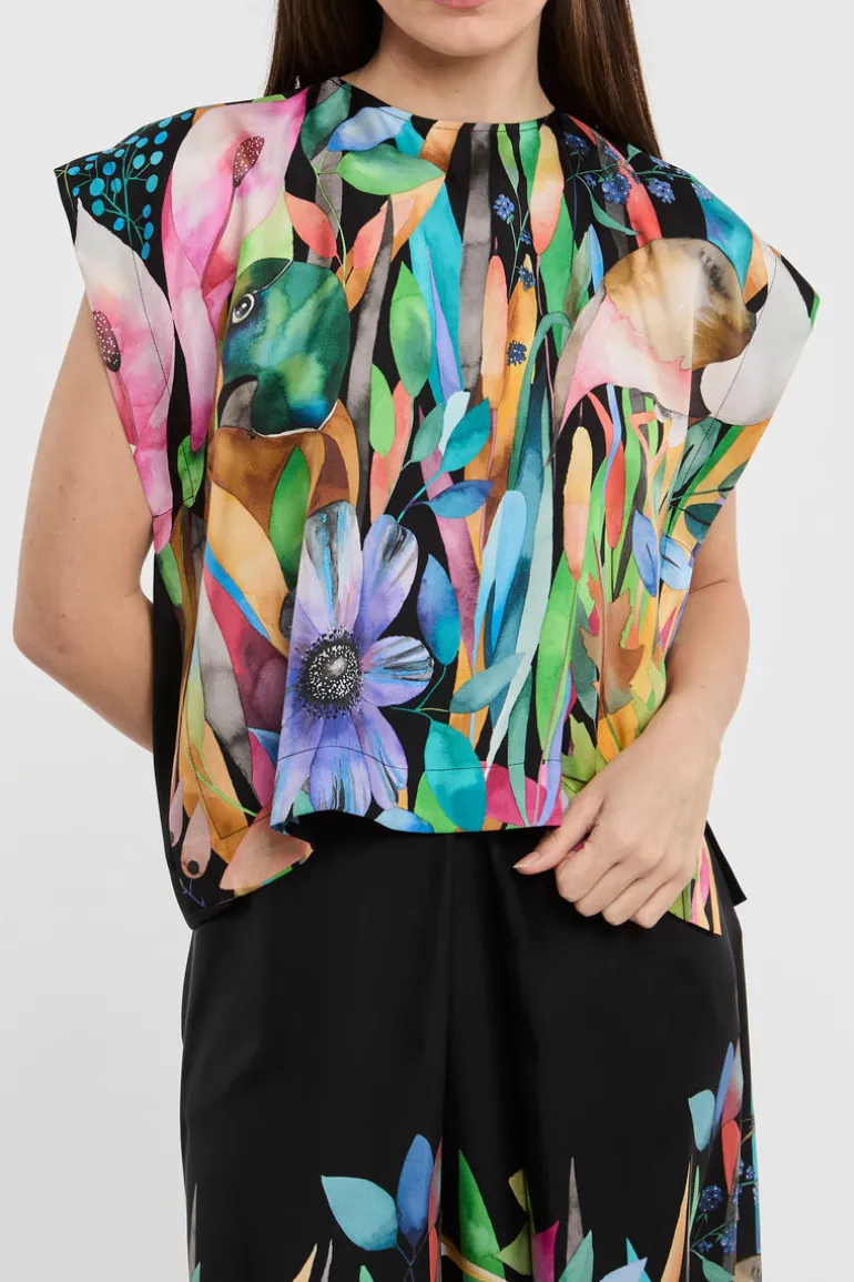 Questa blusa multicolor è perfettamente combinabile con jeans o pantaloni di colore scuro. Aggiungi un paio di scarpette con tacco per un look sofisticato o opta per dei mocassini se preferisci uno stile più casual.