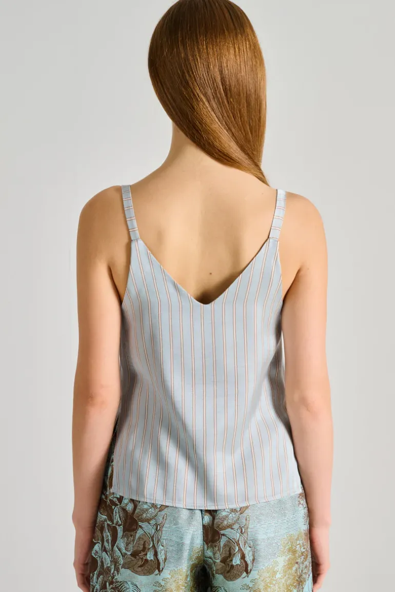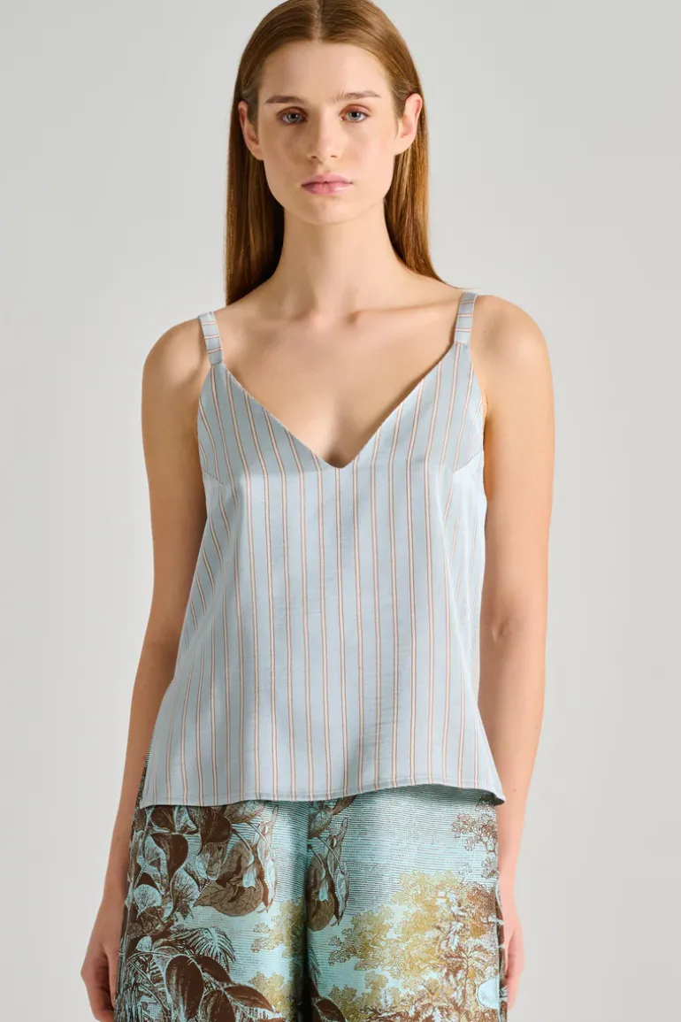 La qualità dei materiali utilizzati e la cura dei dettagli fanno di questo top una scelta ideale per chi cerca comfort senza rinunciare allo stile. Indossalo con jeans per un look casual oppure abbinalo a una gonna per un’outfit più elegante. Il top Funky Pin Striped è perfetto per ogni stagione e si presta a numerosi abbinamenti.