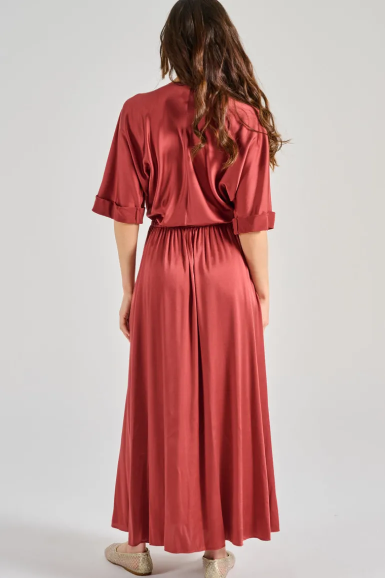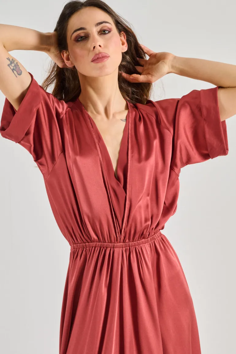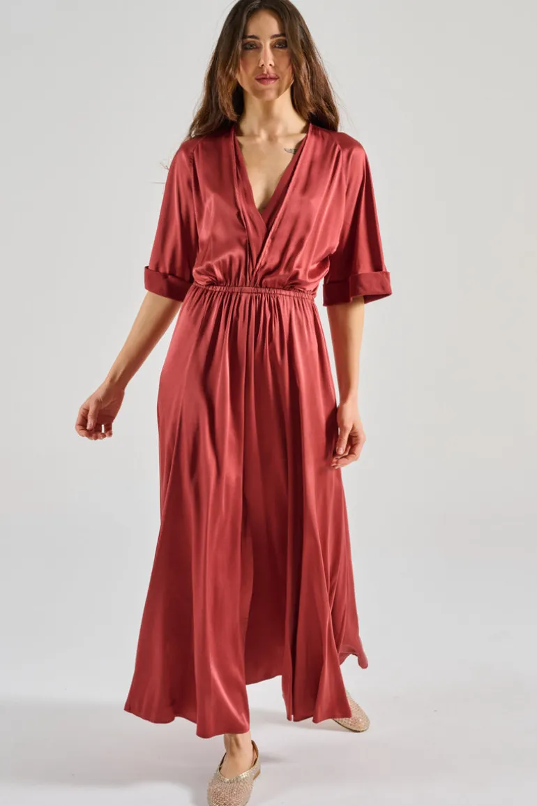 Con il suo taglio raffinato e il colore caldo, questo abito si adatta facilmente a qualsiasi guardaroba. Ideale per eventi formali o informali, può essere abbinato a tacchi alti o stivaletti per un look ricercato. Scegli il tuo stile con Forte Forte.
