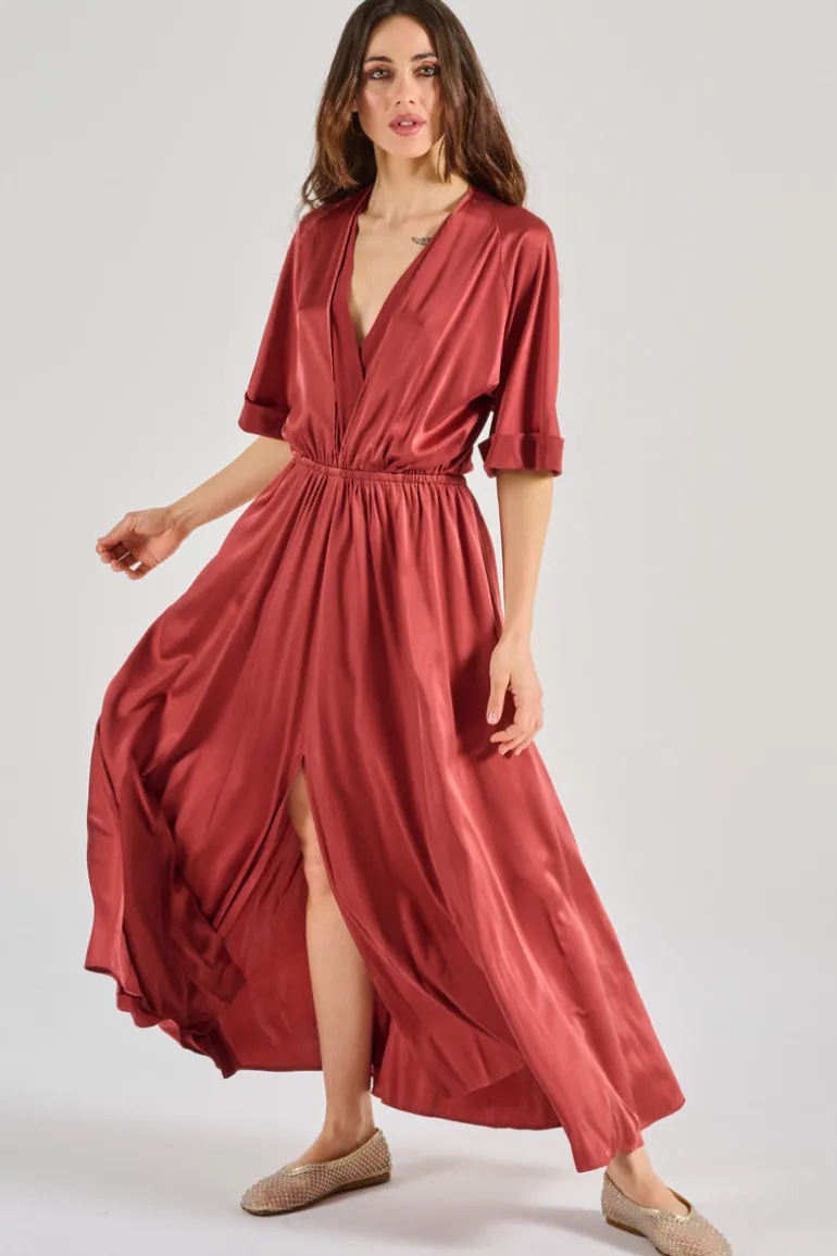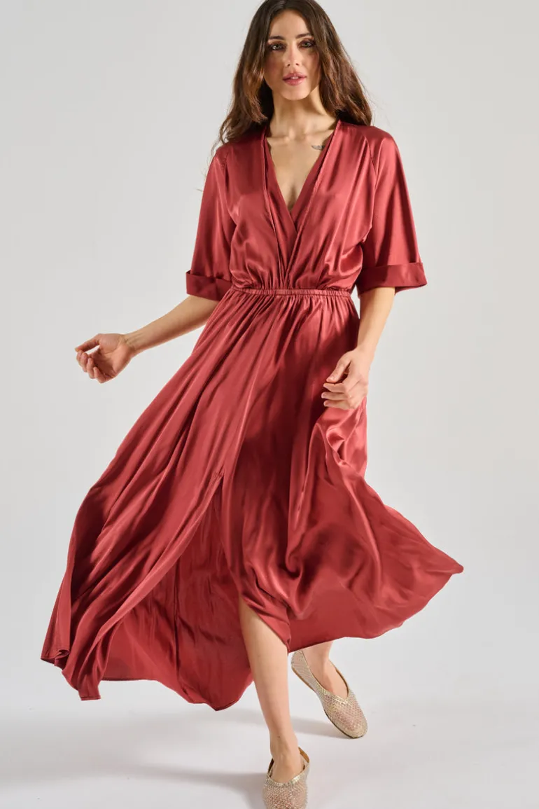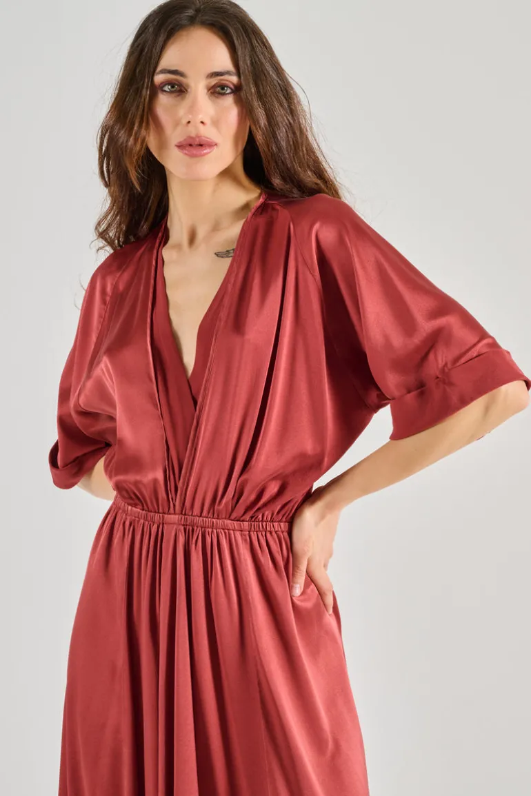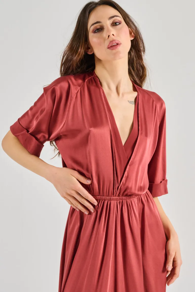 Con il suo taglio raffinato e il colore caldo, questo abito si adatta facilmente a qualsiasi guardaroba. Ideale per eventi formali o informali, può essere abbinato a tacchi alti o stivaletti per un look ricercato. Scegli il tuo stile con Forte Forte.