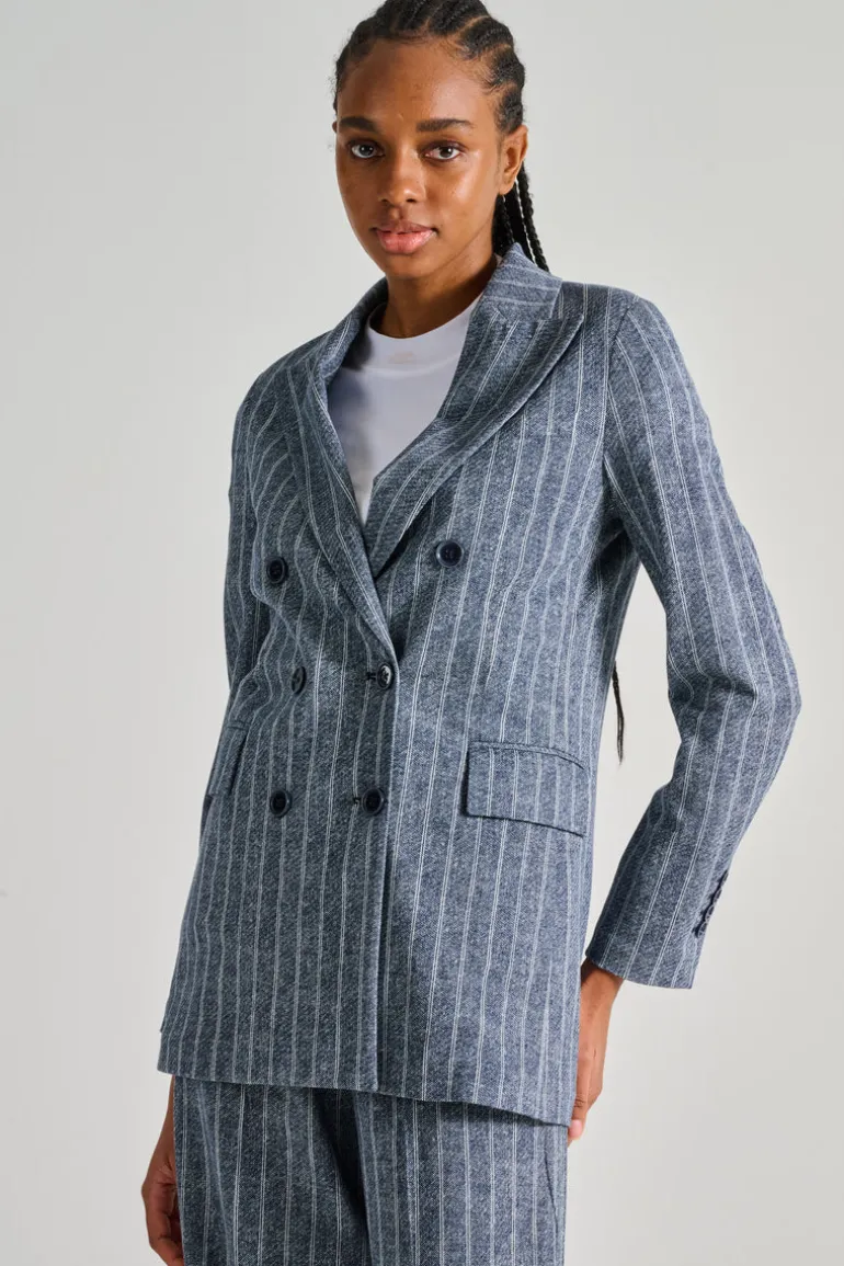 Scopri la giacca doppiopetto in piquet azzurro firmata Circolo 1901. Questo capo elegante è perfetto per creare outfit sofisticati, ideale per occasioni formali o per dare un tocco di classe al tuo look quotidiano.