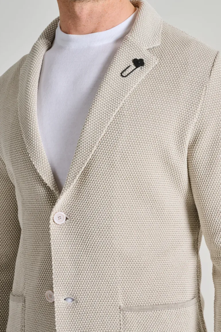 Scopri la giacca maglia beige da uomo realizzata da Lardini. Questo capo è perfetto per chi cerca uno stile elegante ma allo stesso tempo informale. La giacca è caratterizzata da un design moderno e una vestibilità comoda, adatta per diverse occasioni.