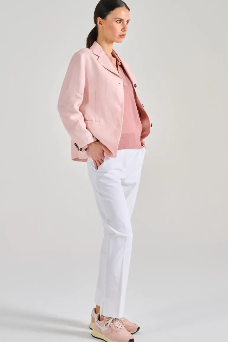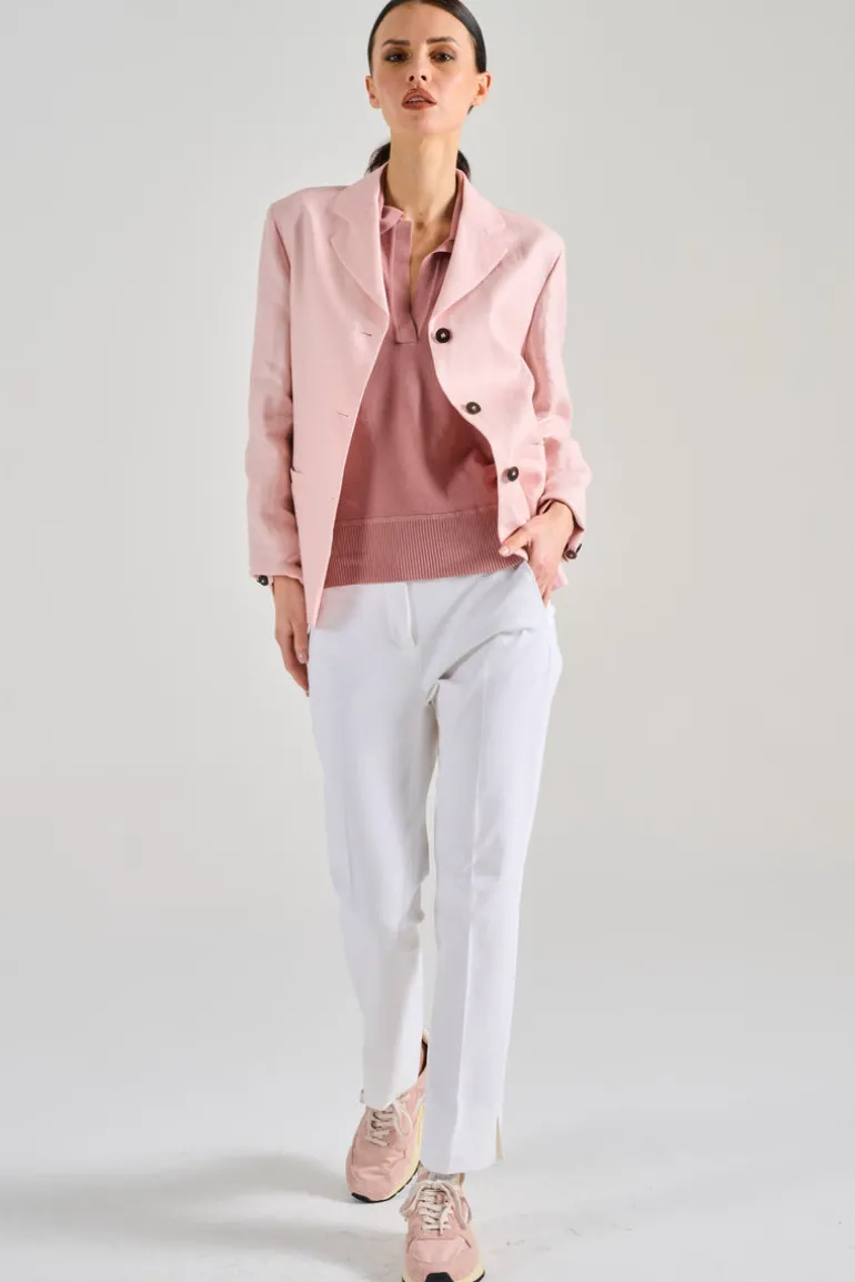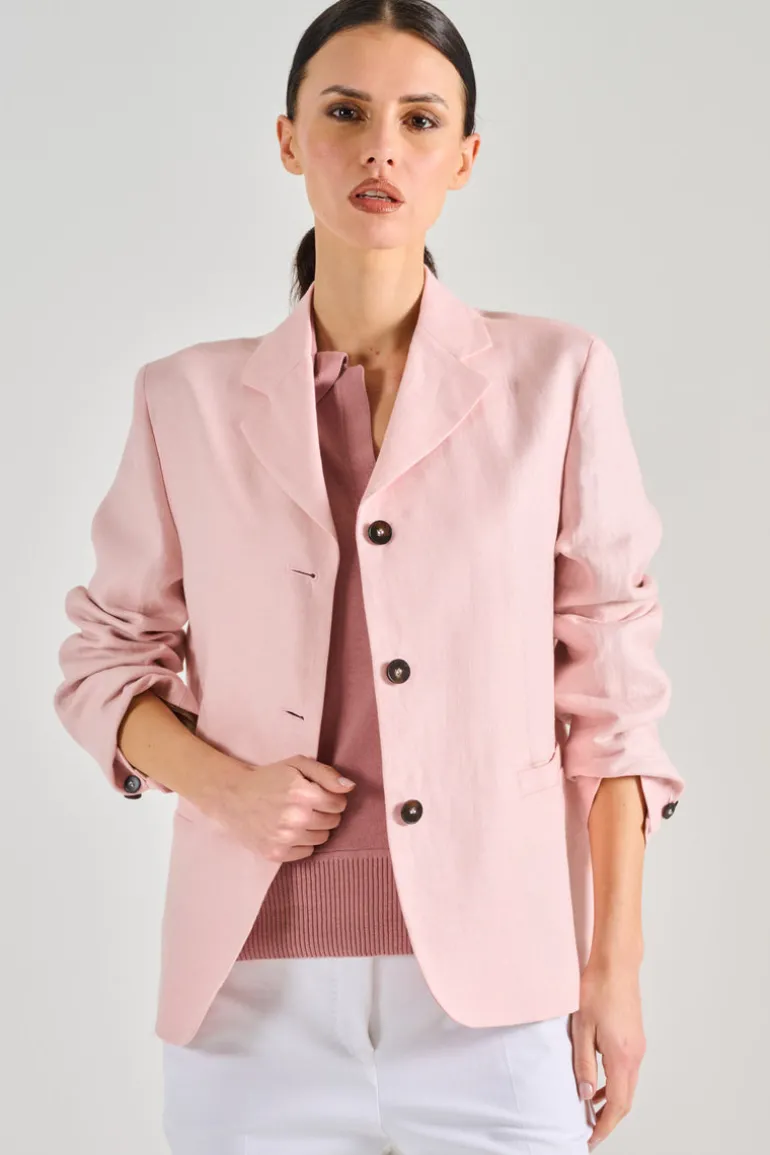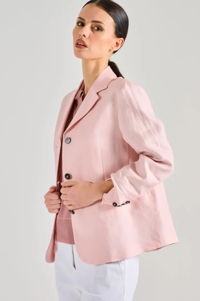 Scopri la giacca monopetto rosa di Montedoro, un capo versatile e raffinato che arricchisce il tuo guardaroba. Questo modello si distingue per il suo design elegante, perfetto per varie occasioni, sia formali che casual.