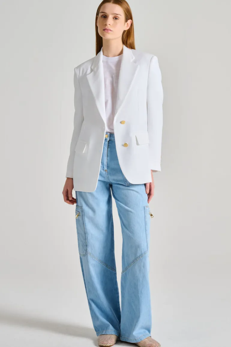 Realizzata con attenzione ai dettagli, la giacca è un must-have per chi ama lo stile contemporaneo. La versatilità del colore bianco consente di abbinarla facilmente a qualsiasi look, dal casual all’elegante. Indossala per una serata speciale o per un incontro di lavoro, e metti in risalto la tua personalità con un capo di alta moda.
