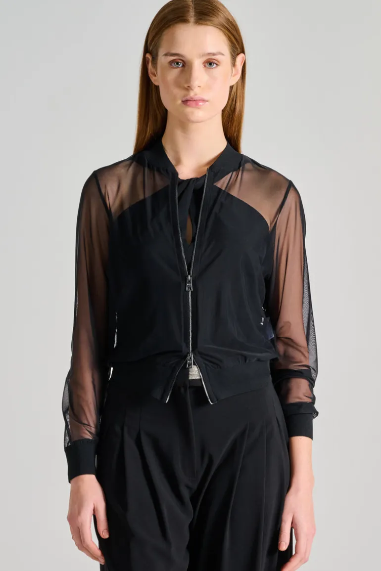 Scopri il giubbotto bomber in tulle soft di d.exterior, un capo versatile e alla moda perfetto per ogni occasione. Questo giubbotto dal design elegante è realizzato in un materiale morbido e leggero, che garantisce comfort e stile. Il colore nero lo rende un elemento facilmente abbinabile a diversi outfit, dalla serata informale al look più sofisticato.