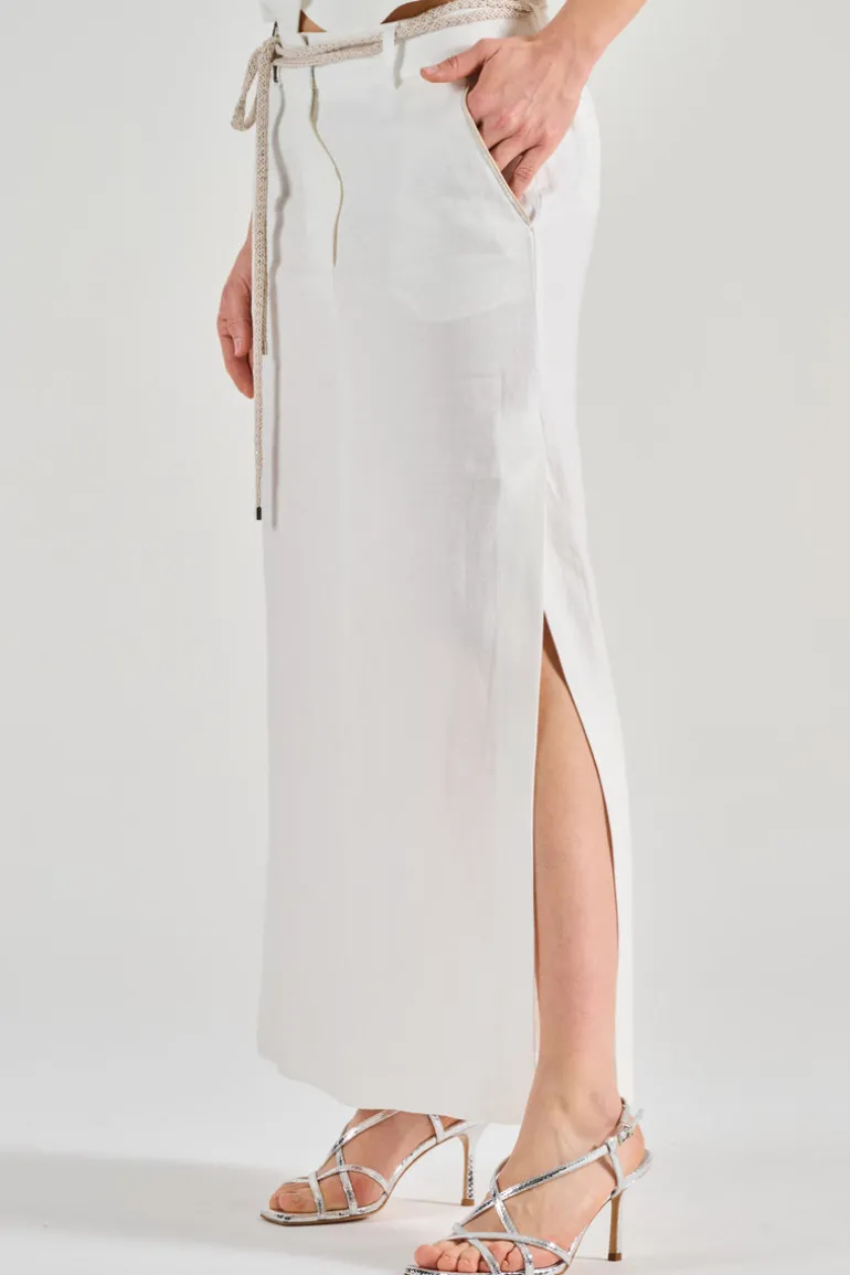 La gonna Gabardina di Peserico è un capo versatile e raffinato, ideale per il guardaroba femminile. Realizzata in puro lino, offre una leggerezza e una freschezza uniche, perfette per le giornate estive. Il colore bianco conferisce un tocco di eleganza e classico al tuo look, permettendo facili abbinamenti con diverse bluse e accessori.