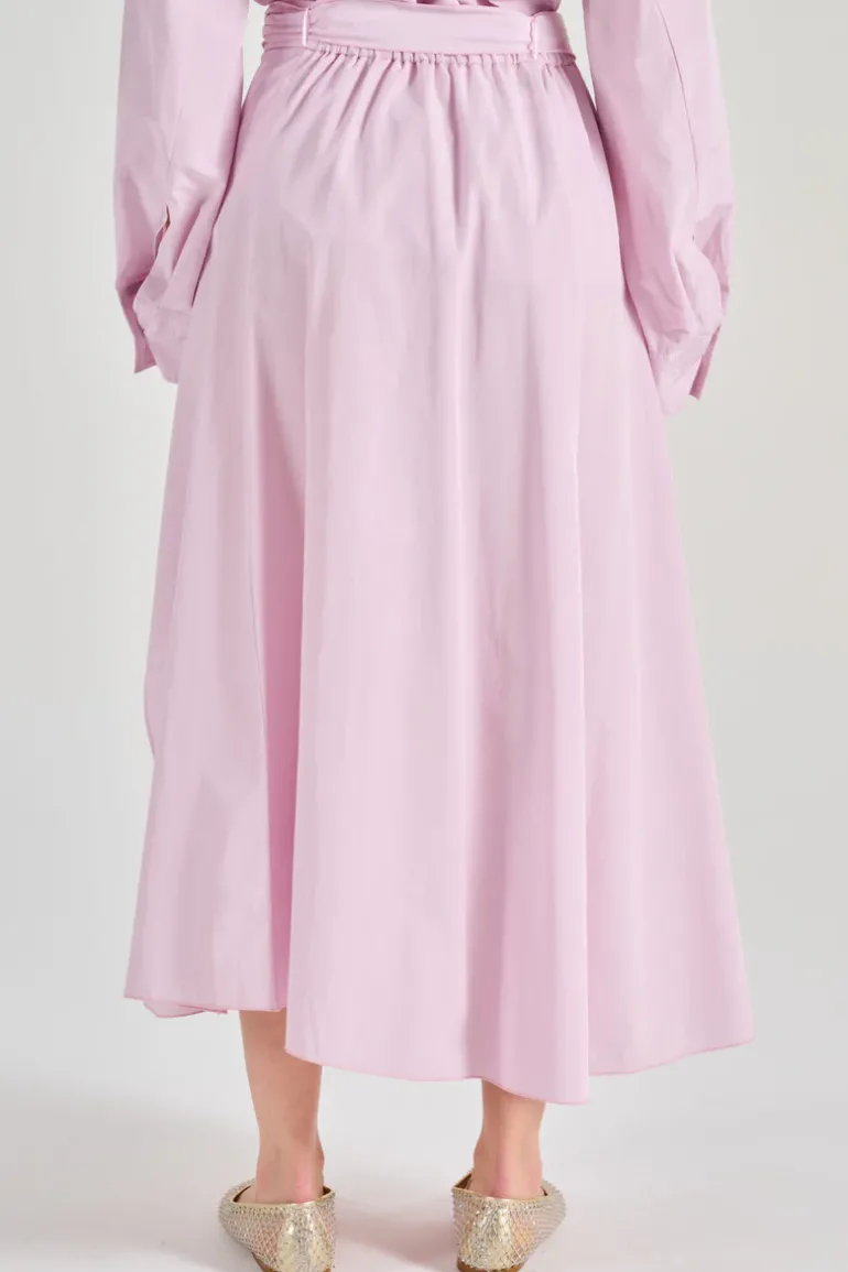 Il design della gonna è pensato per esaltare la silhouette e offrire comfort, grazie a una vestibilità adatta a diverse forme del corpo. La scelta del rosa come colore principale conferisce un tocco di freschezza e femminilità, rendendola facilmente abbinabile a diverse magliette e bluse. Aggiungi questo pezzo unico al tuo outfit per un look elegante e sofisticato.