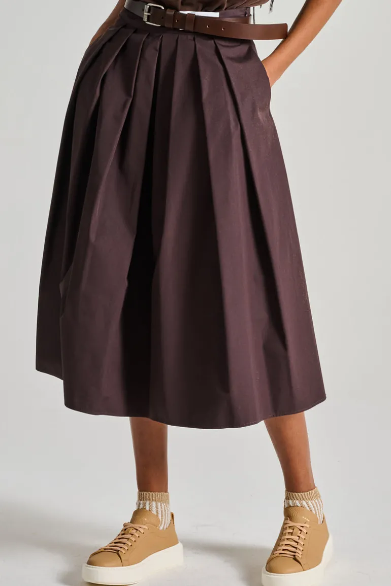 Scopri la gonna marrone di Aspesi, un capo d’abbigliamento versatile e classico. La tonalità marrone conferisce a questo indumento una semplicità elegante, rendendolo adatto a molteplici occasioni, sia per un look casual che per eventi più formali.