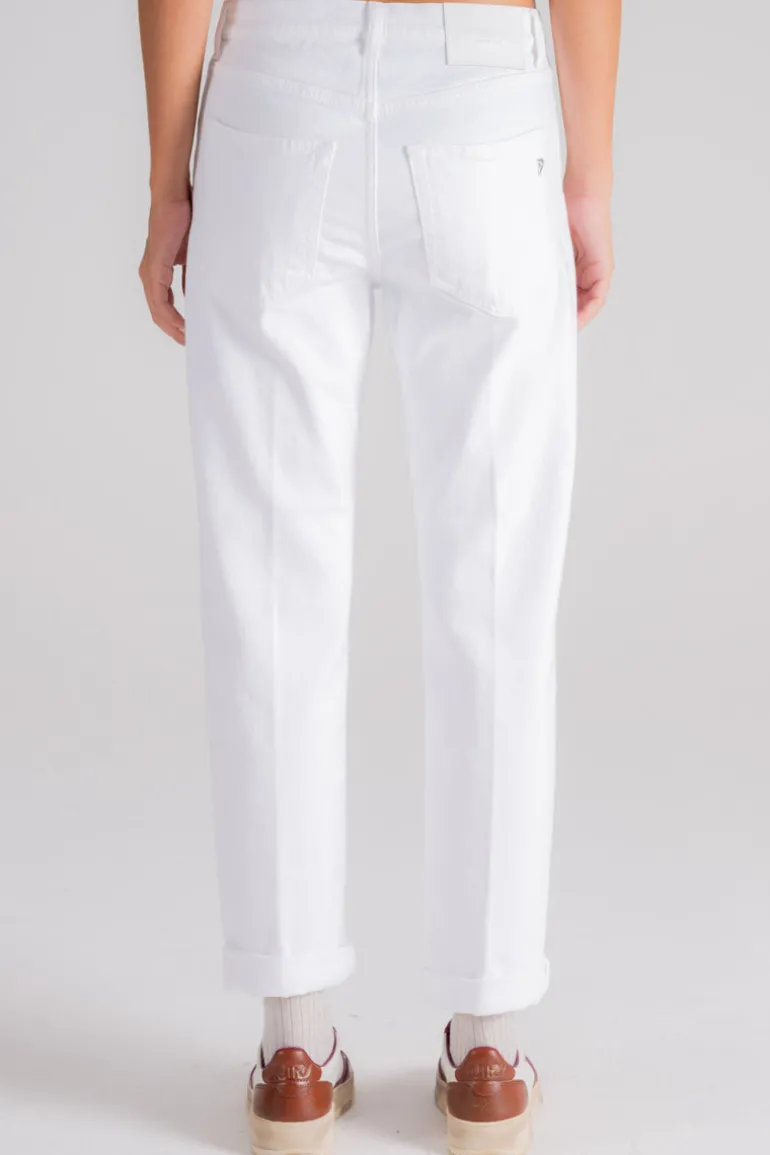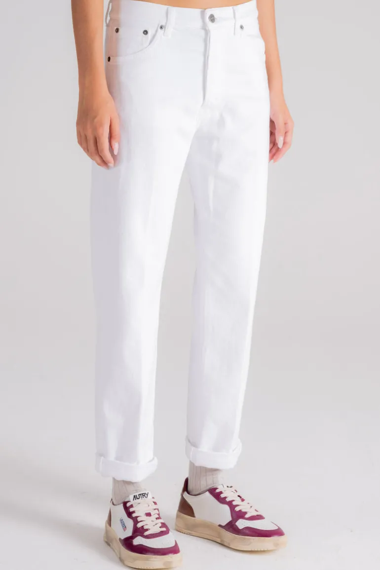 Per un look casual-chic, abbinale a un pullover leggero e un paio di sneakers minimal. Per una serata formale, potresti considerare l’abbinamento con una blusa fluttuante e stiletti affilati. Indipendentemente dal tuo stile, i jeans Dondup Icon bianchi si integrano senza problemi in ogni armadio.
