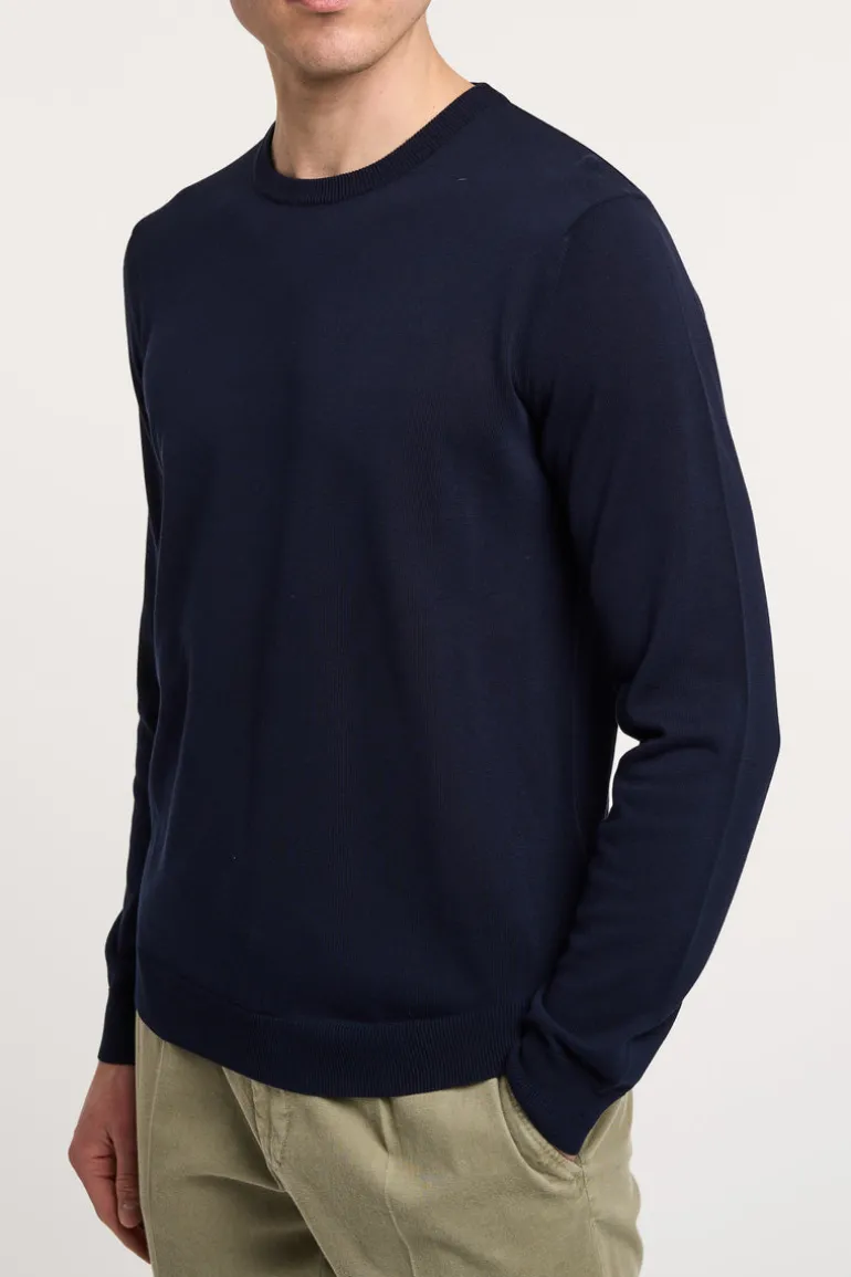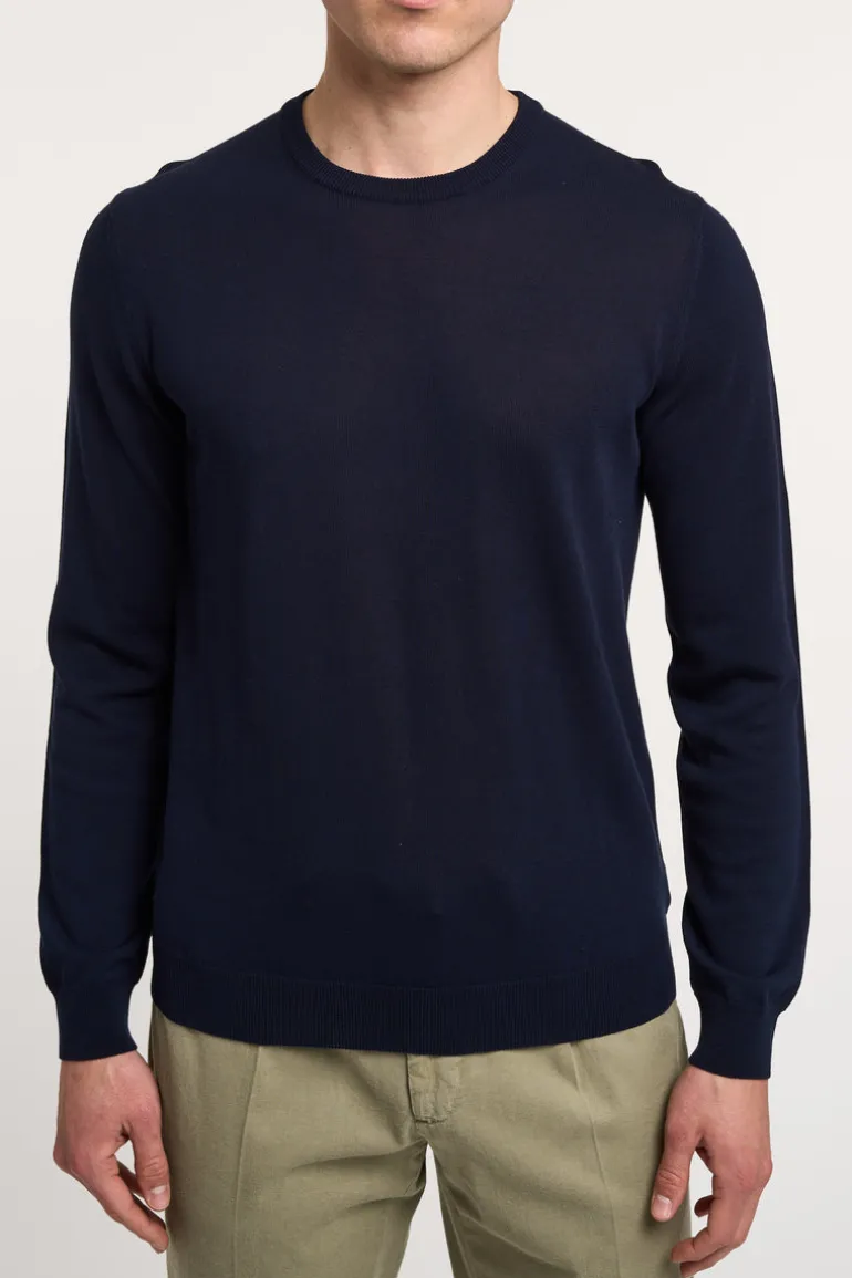 Ispirata alla raffinata semplicità dello stile italiano, questa maglia si distingue per il suo design pulito e lineare. Le sue sfumature blu evocano sensazioni di tranquillità e affidabilità, rappresentando perfettamente l’heritage del brand Zanone.