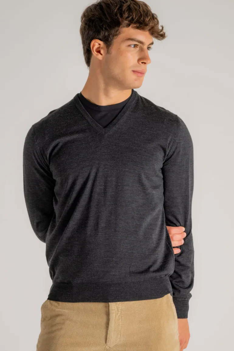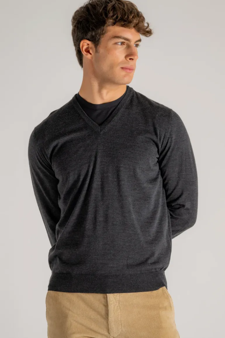 Questa sofisticata maglia a V può essere abbinata a un paio di jeans o pantaloni classici per un look completo. Ideale sia per il lavoro che per occasioni informali, garantendo sempre comfort e stile. Aggiungi un paio di stivali eleganti per completare il look.