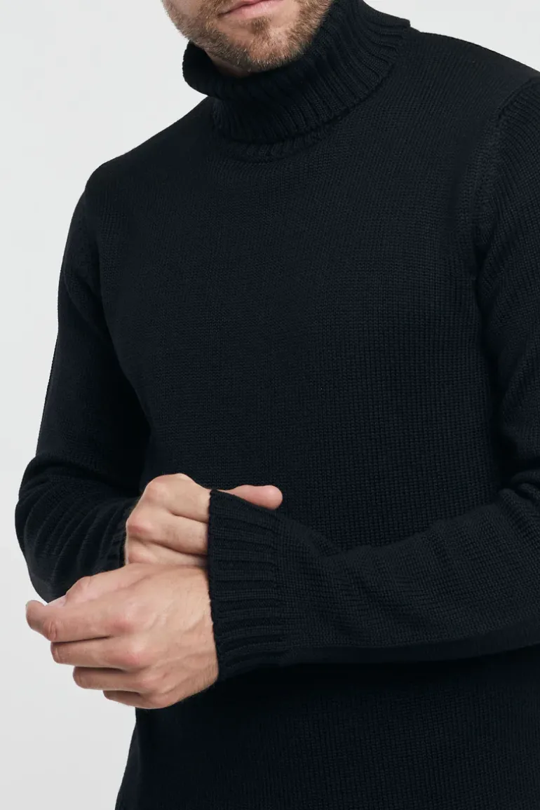 La tonalità di nero di questo dolcevita rappresenta un’icona di stile e un punto di riferimento per il guardaroba maschile. L’articolo offre un aura sofisticata e versatile, rendendo il capo estremamente adattabile sia agli outfit diurni che serali.