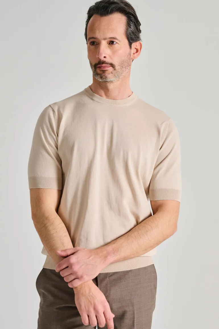 Scopri la maglia girocollo mezza manica beige da uomo di Filippo De Laurentiis, un capo versatile e dallo stile unico. Questa maglia rappresenta la fusione perfetta tra comfort e semplicità, rendendola ideale per diverse occasioni. Grazie al suo design elegante, può essere facilmente abbinata a pantaloni casual o jeans, consentendoti di creare look distintivi per il tuo quotidiano.