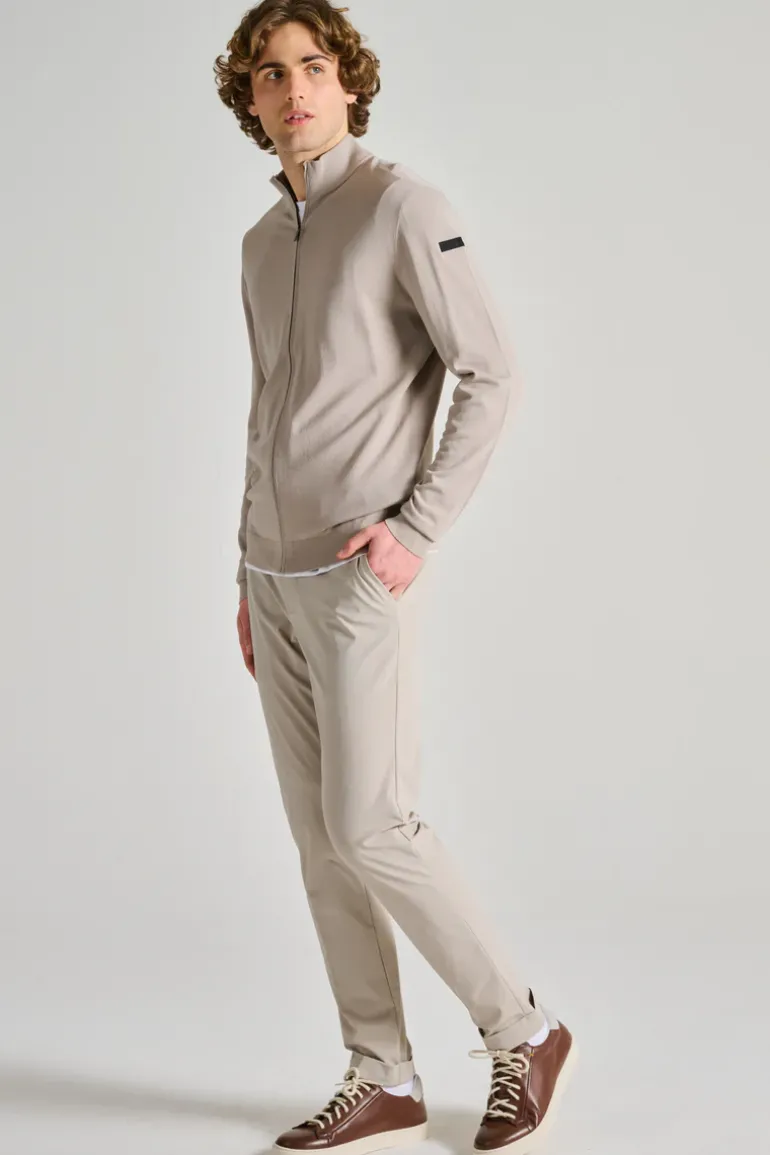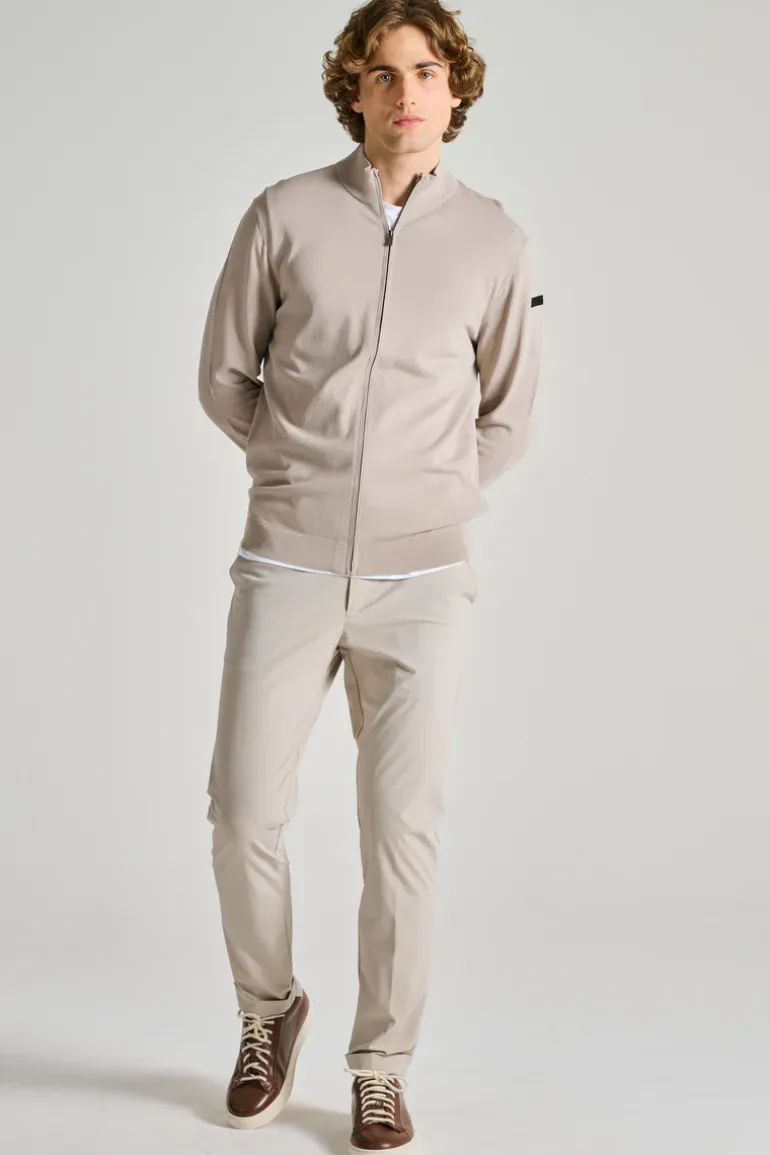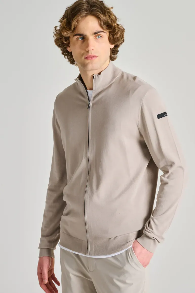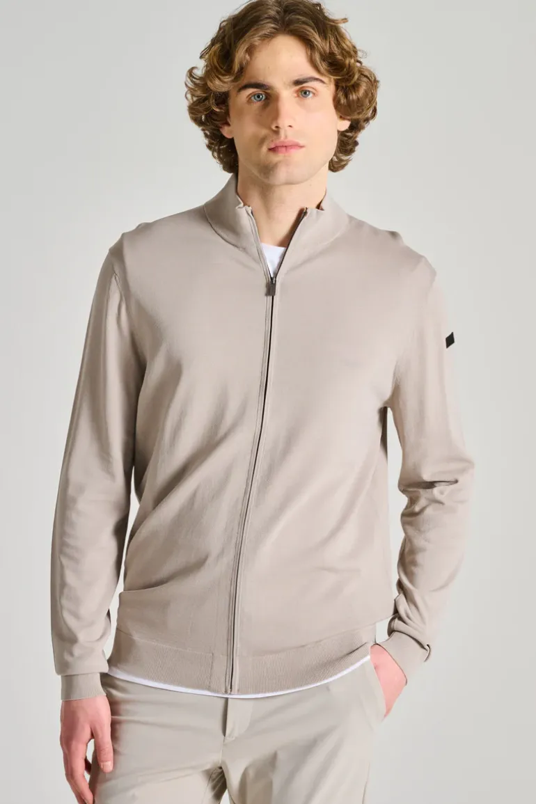 La maglia presenta una comoda chiusura a zip, che permette di adattarsi facilmente a qualsiasi look. Con la sua tonalità neutra, è facile da abbinare sia a pantaloni casual che a look più curati. Scegli la qualità e lo stile di RRD per un outfit impeccabile.
