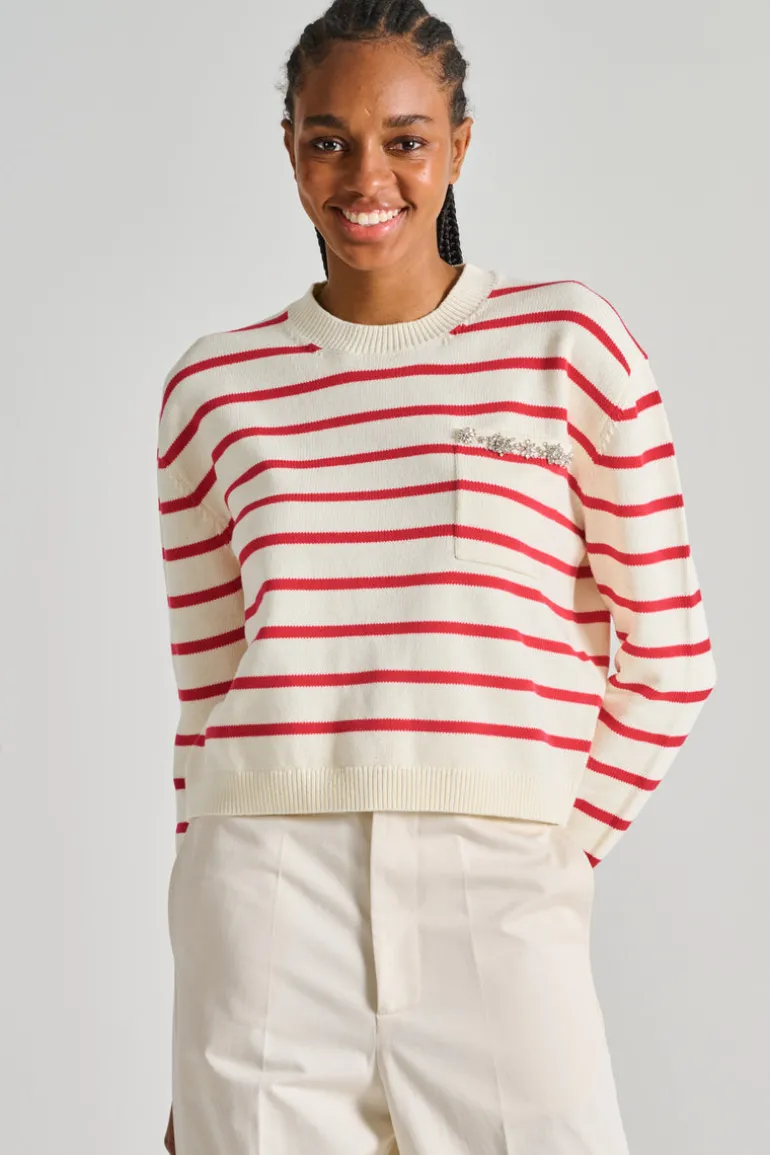 Con un design versatile, la maglia Rita può essere facilmente abbinata a jeans, gonne o pantaloni eleganti, rendendola adatta a diverse occasioni, dal casual al formale.