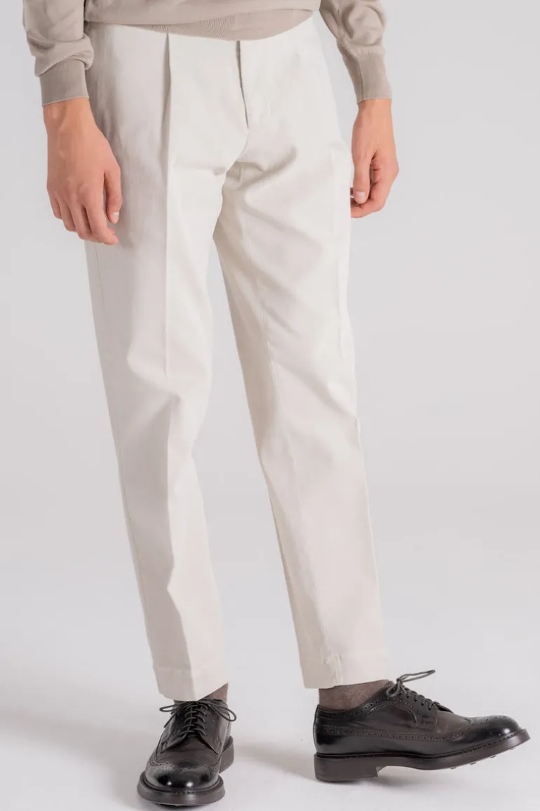 I dettagli del pantalone comprendono: – Passanti in vita- Tasche a filo- Pences- Allacciatura con bottone e zip- Vestibilità Regular